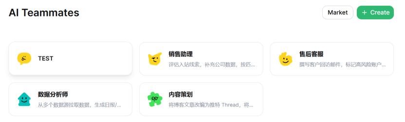 我在Moxt里搭了四个AI Teammates——销售助理、数据分析师、内容策划、售后客服——让它们在同一个团队空间里工作。