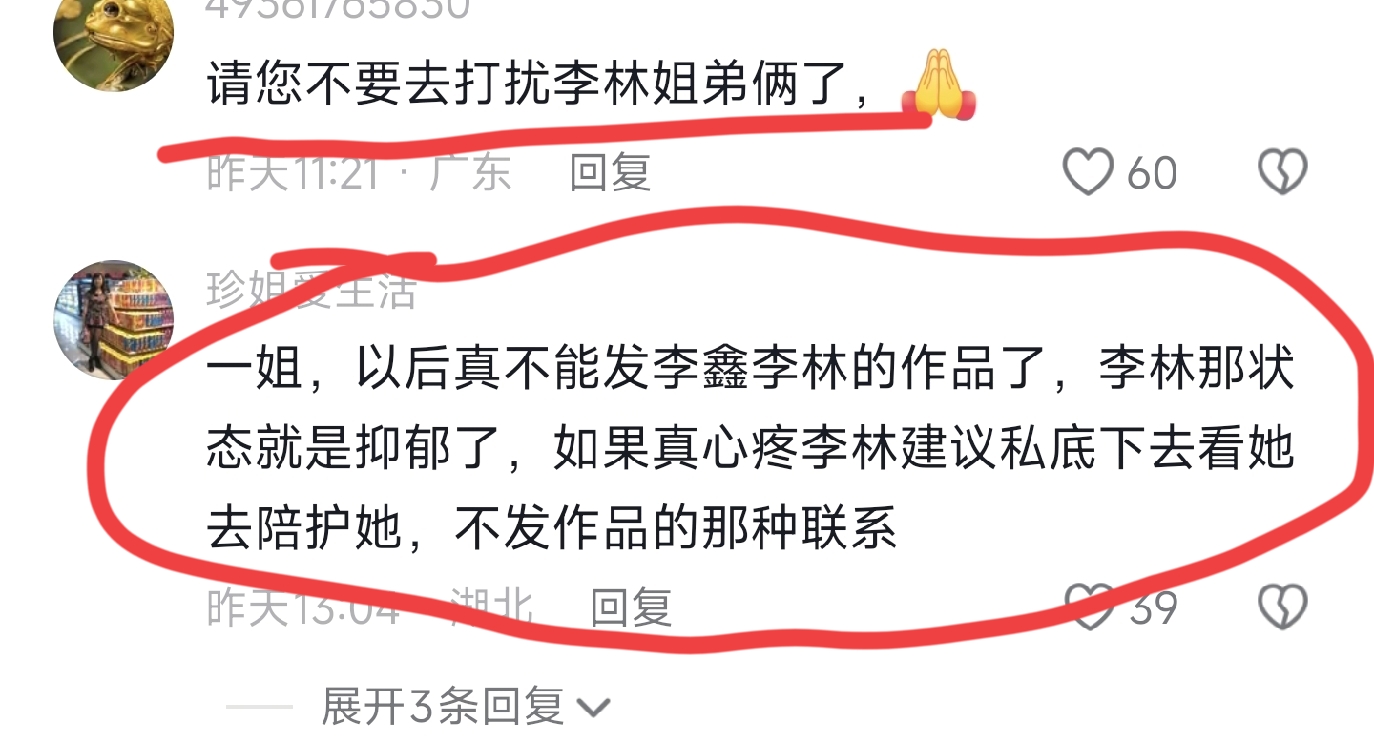 应该是有人在网络上发布关于李鑫李林姐弟的事情,但是李鑫养家姐姐看出了对方应该是不怀好意
