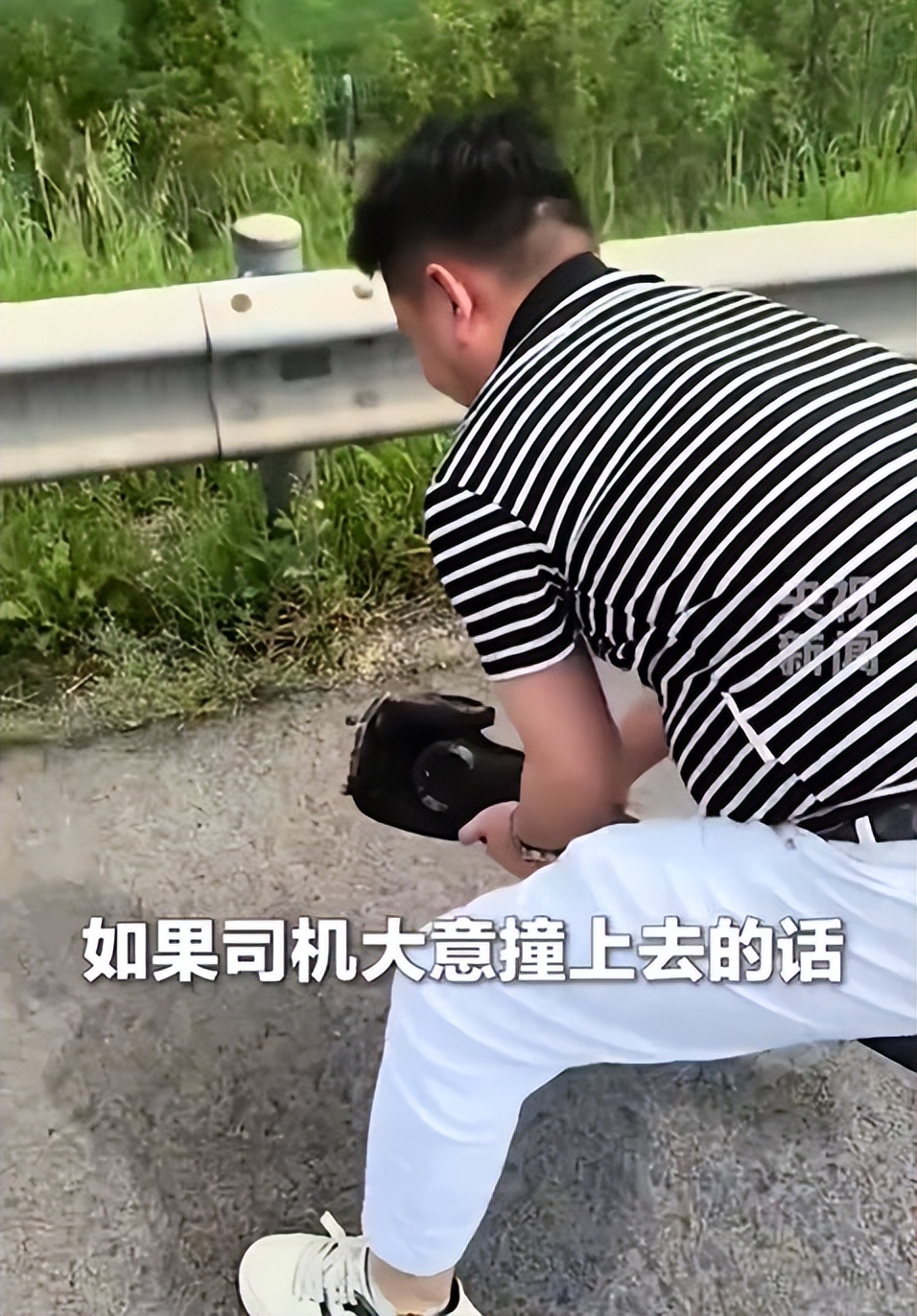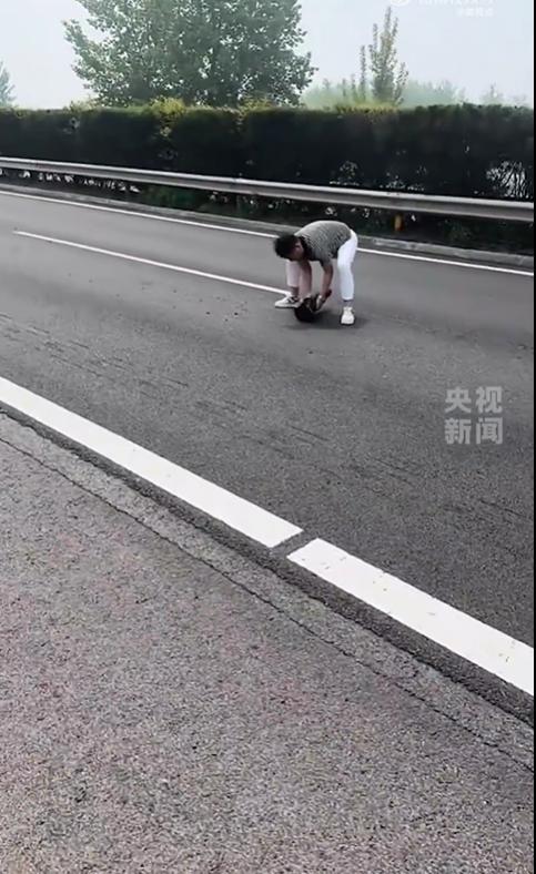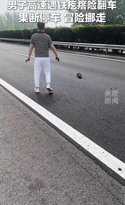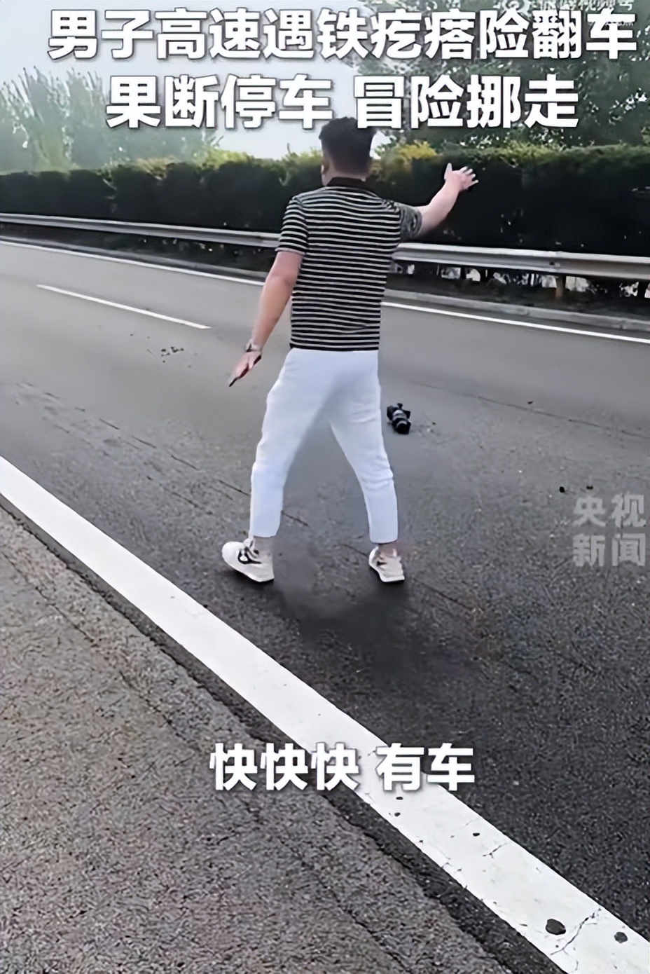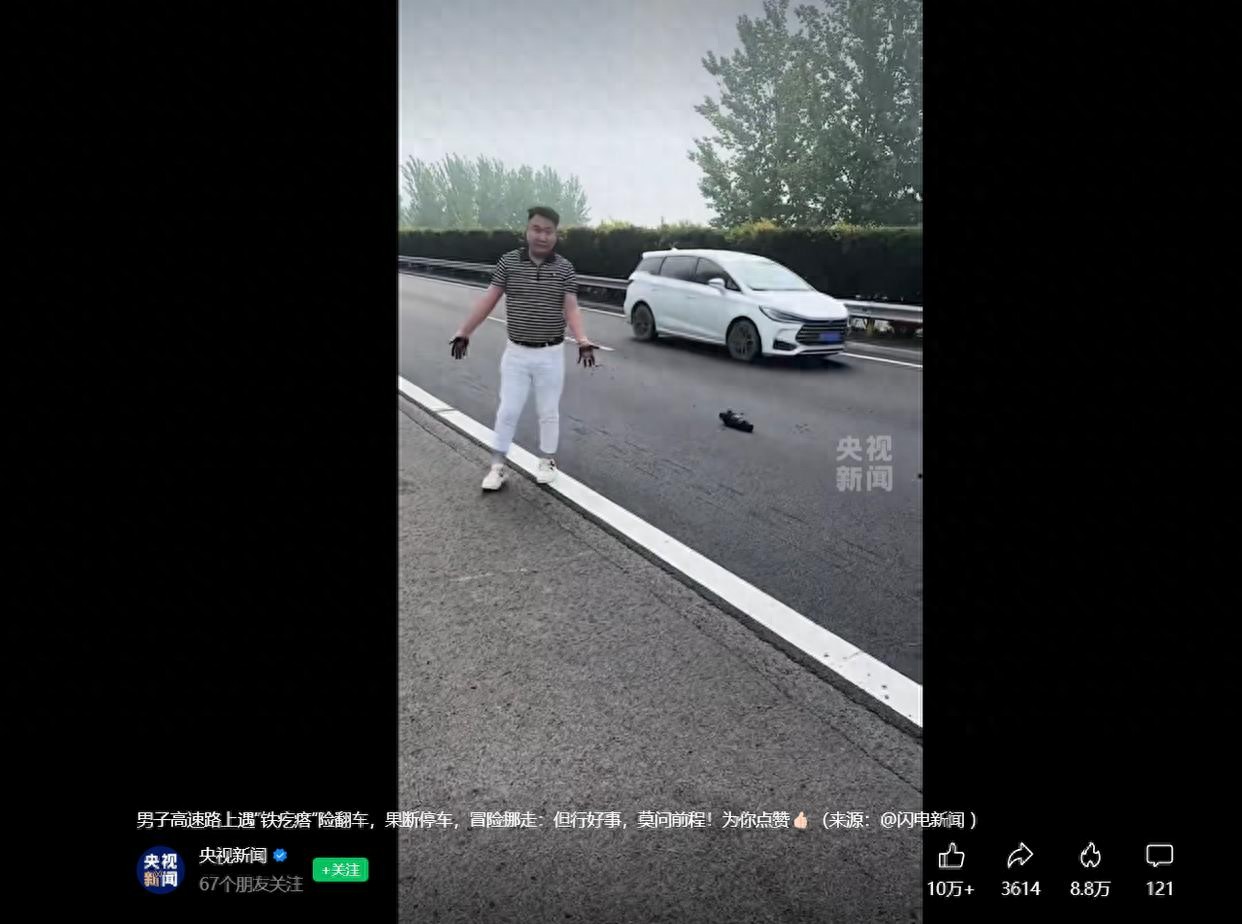 2026年4月21日,央视新闻官方账号发布了一段视频,短短几个小时,点赞量就突破百万。视频里,一个穿着条纹上衣、白色裤子的男人,正蹑手蹑脚地走在高速公路上,他小心翼翼地穿过车流,弯下腰,抱起一个黑乎乎的铁疙瘩,拼命往路边跑。