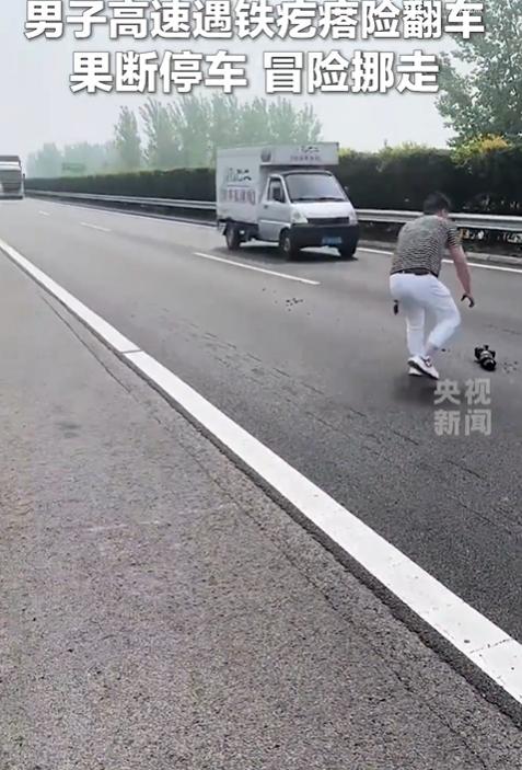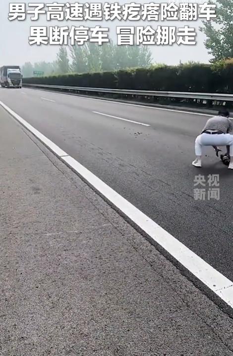 可就是这件“小事”,在央视新闻发出后,引发了全网的热议。因为所有人都知道——在时速超过100公里的高速公路上,弯腰捡起一个三四十斤的铁疙瘩,需要多大的勇气,又意味着怎样的生死时速。