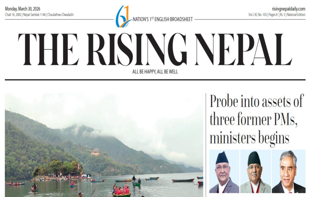 针对三位前总理资产的调查启动(左起依次为奥利、普拉昌达、德乌帕) 图源:《新兴尼泊尔报》2026年3月30日第一版