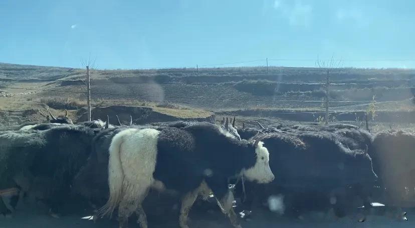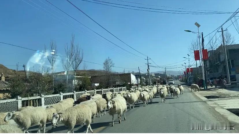 甘肃的乡间小道上,随处可见的牛羊群,且四面环山⛰️太有感觉了[小鼓掌][小鼓掌]