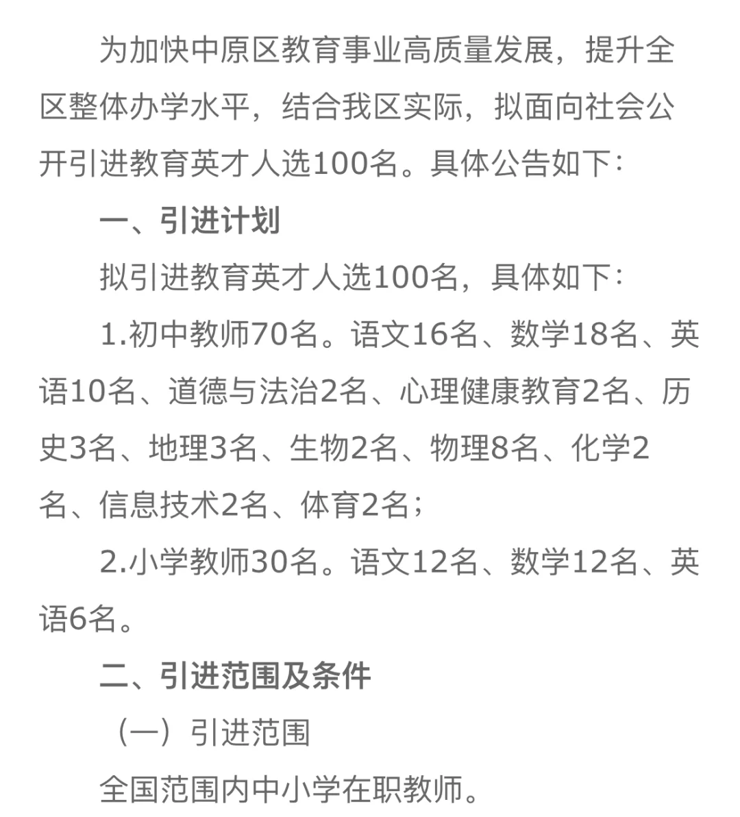 招录100名
