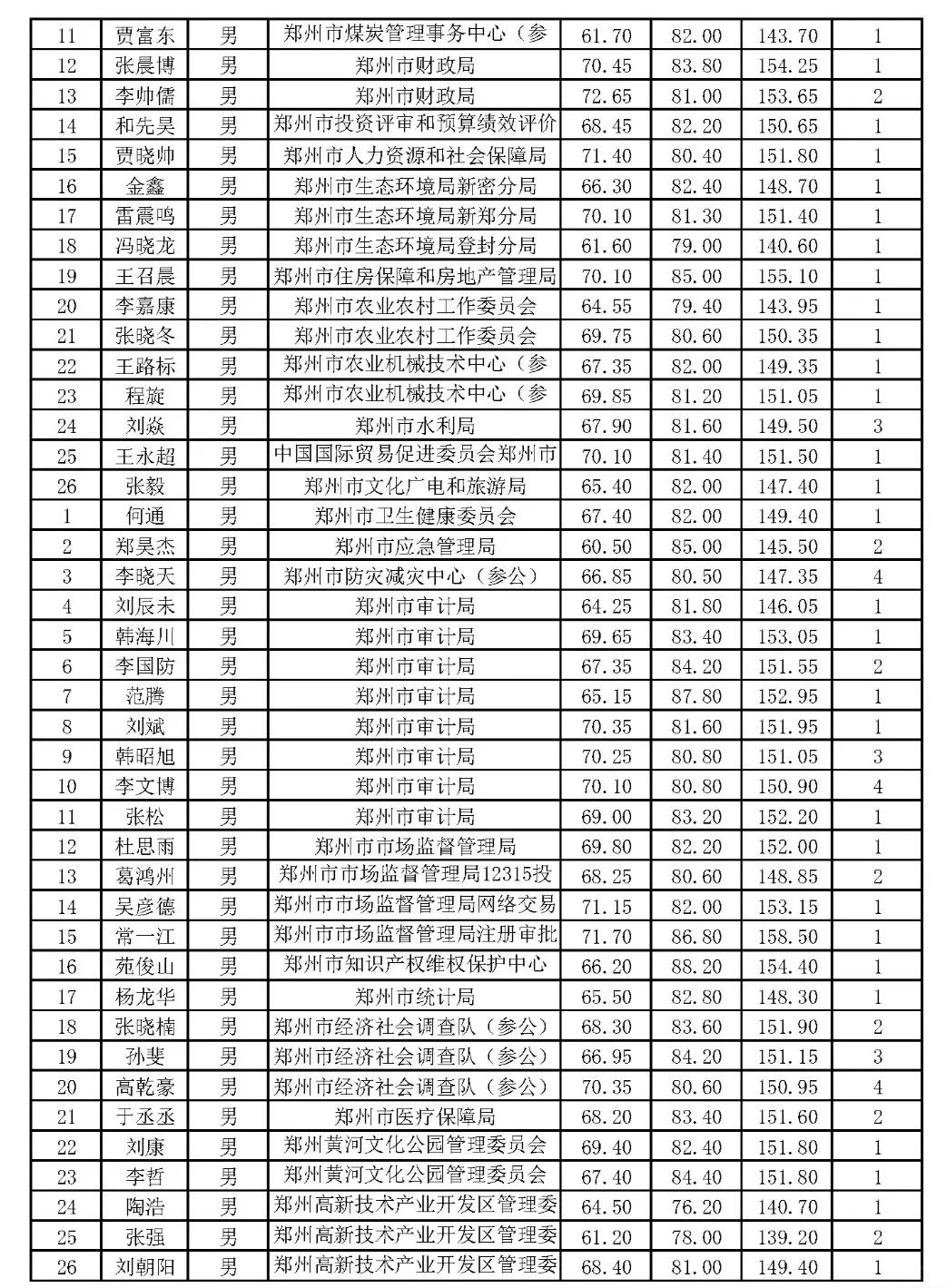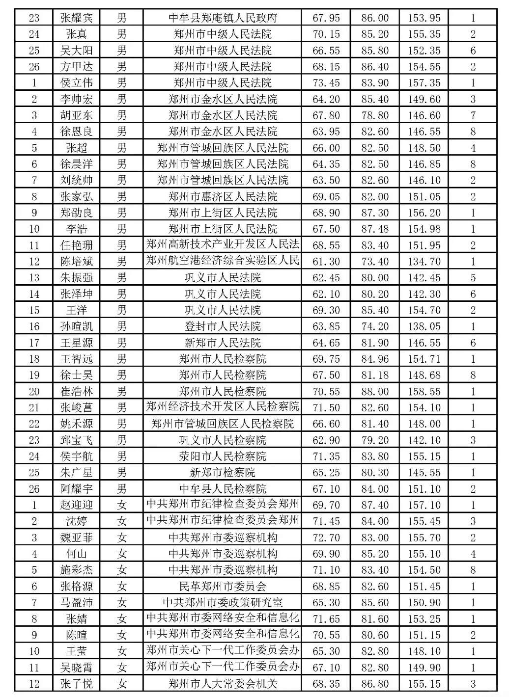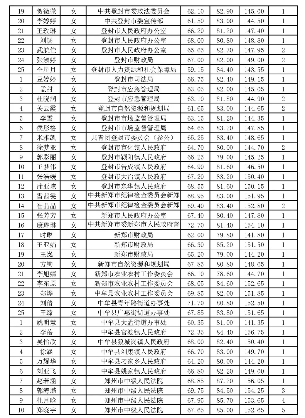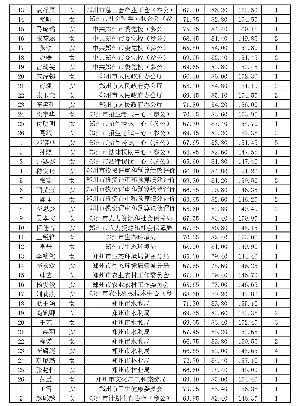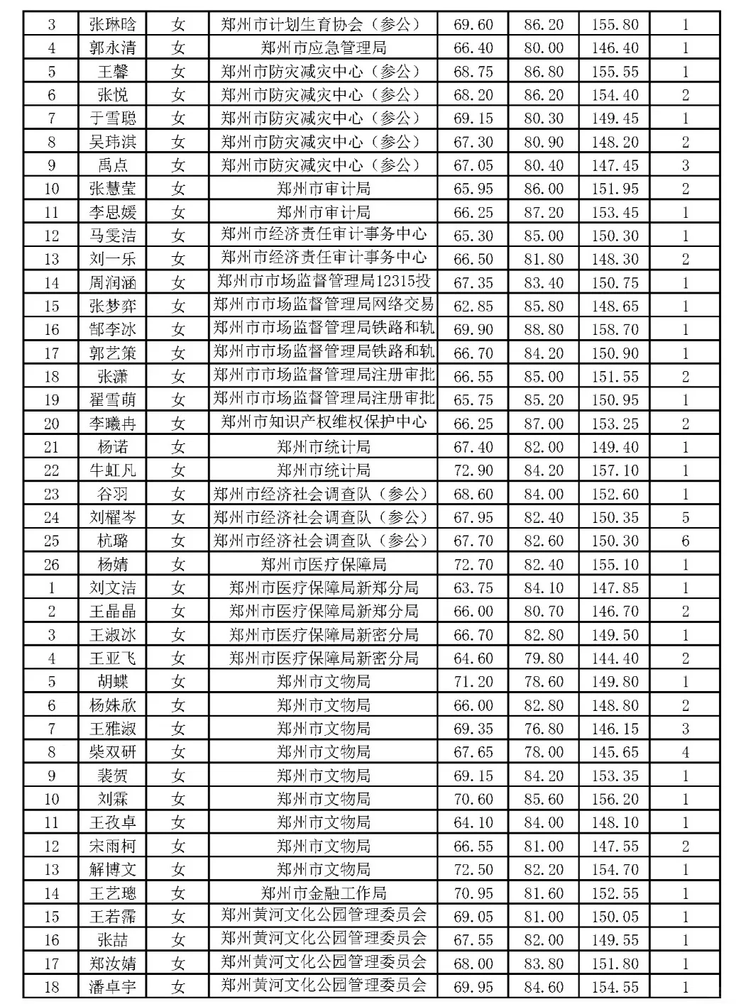 郑州市2024年省考公务员体检名单