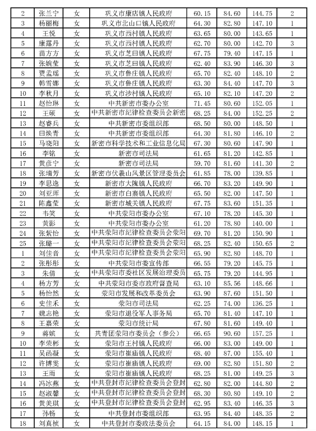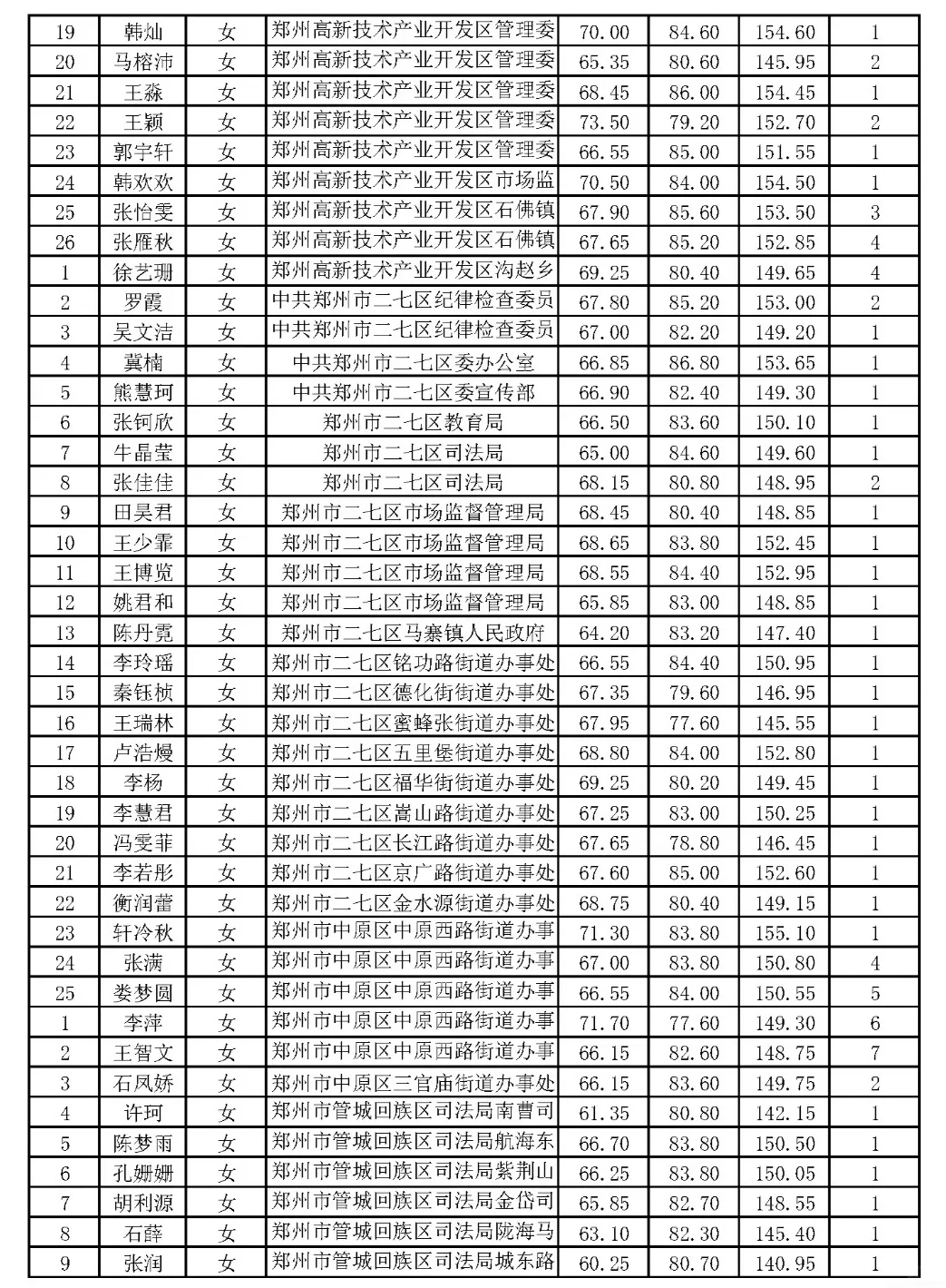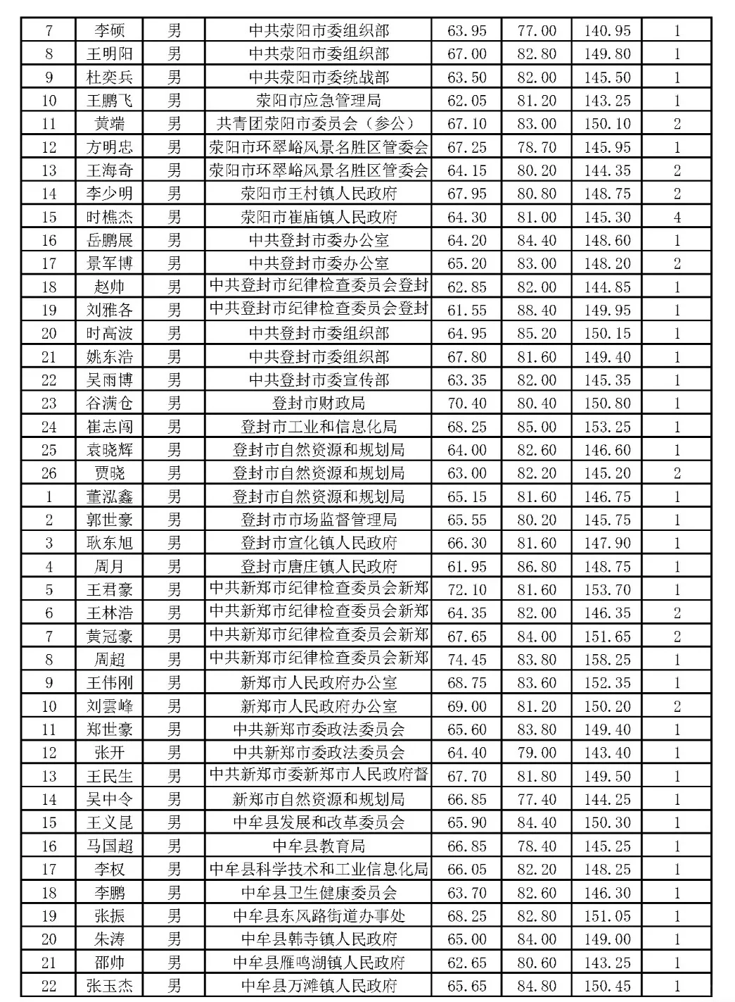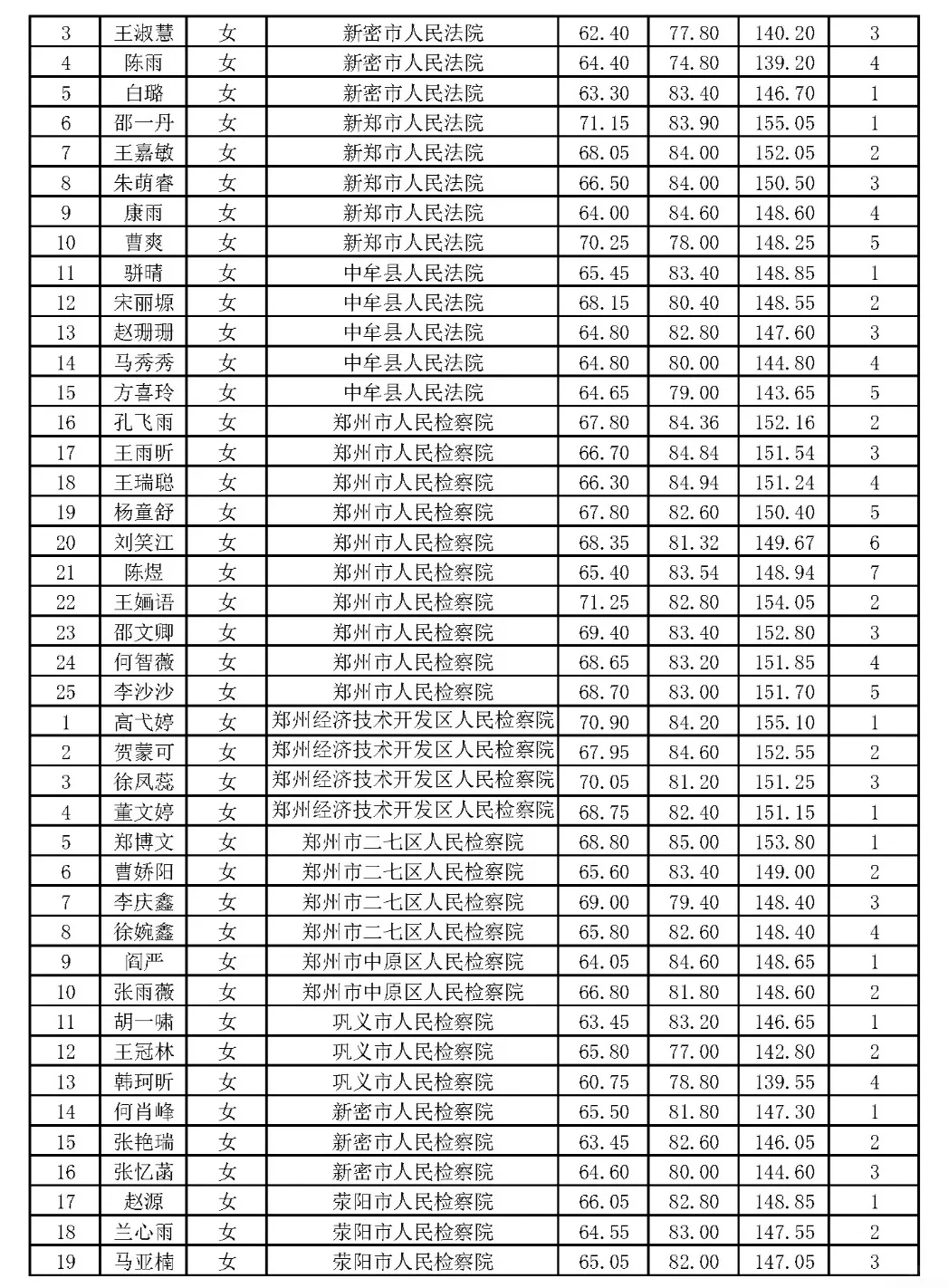 郑州市2024年省考公务员体检名单