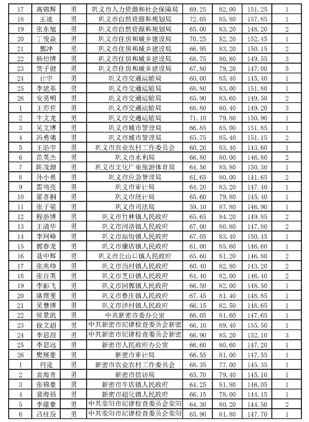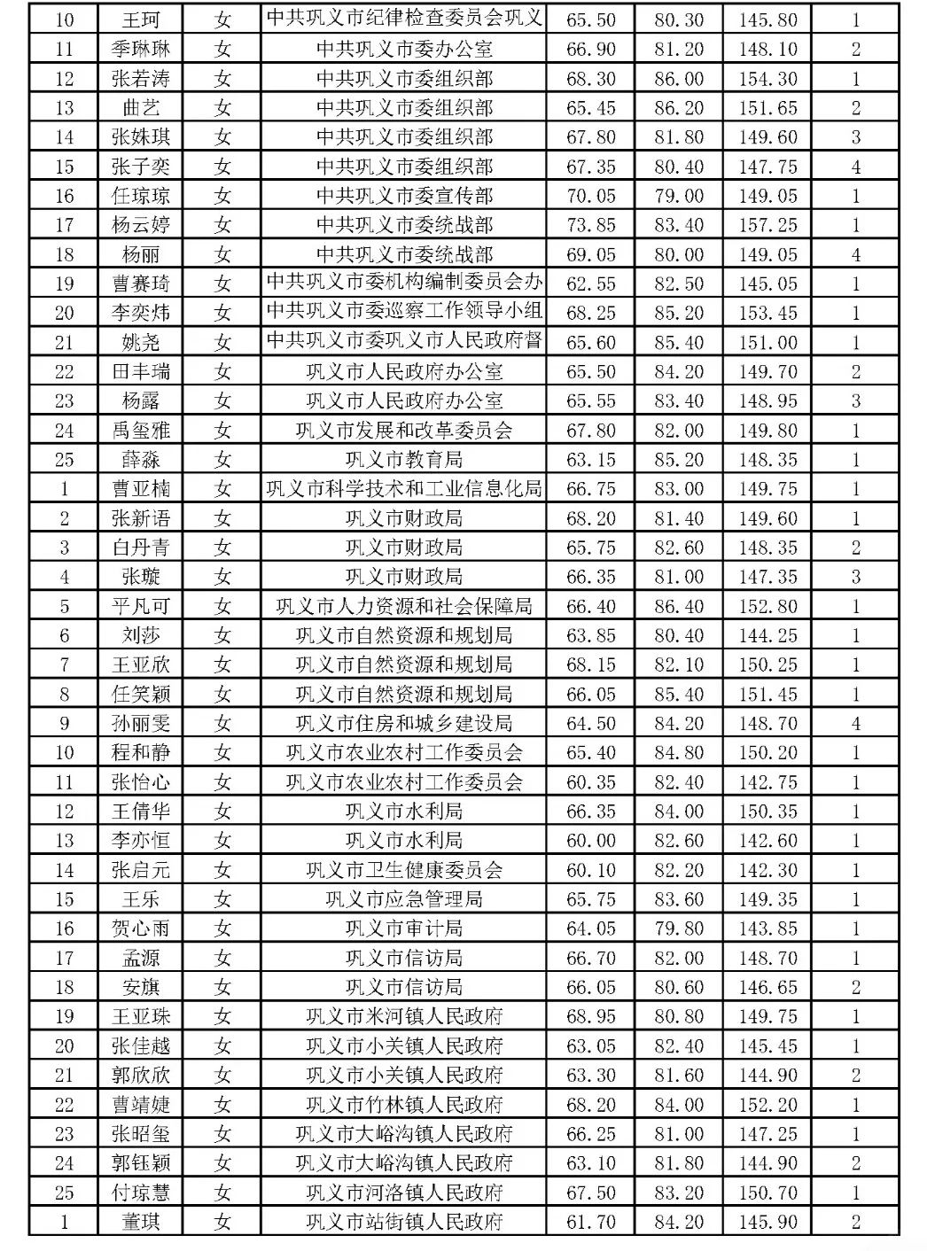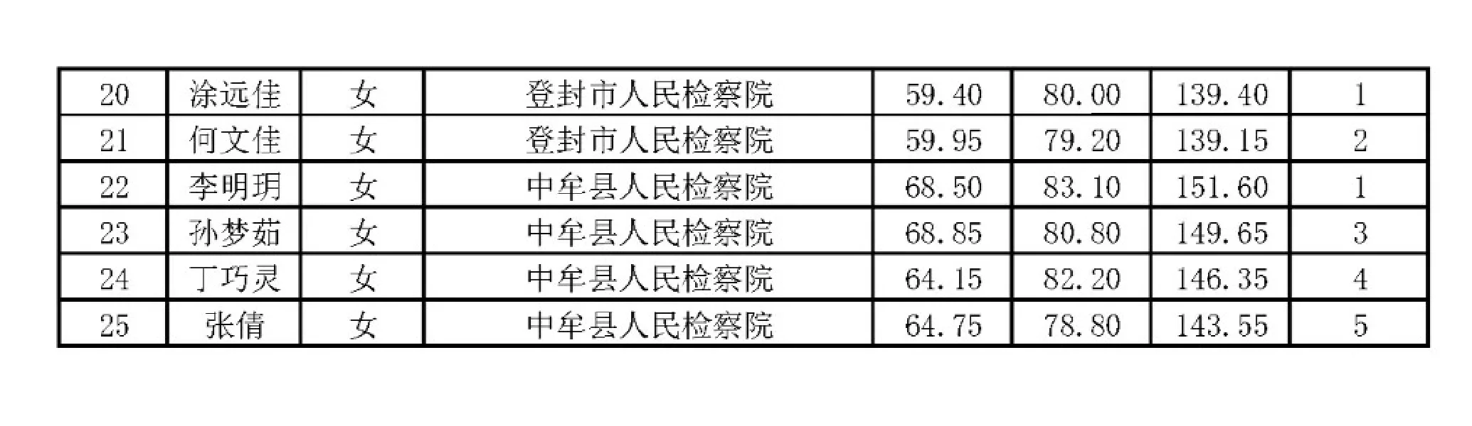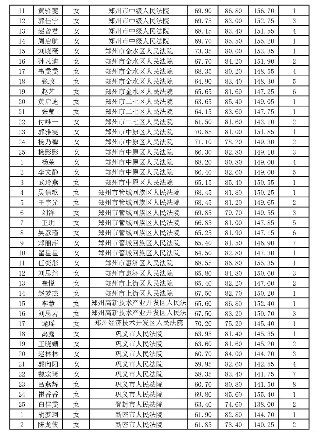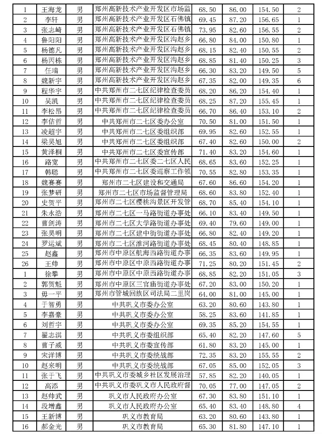 郑州市2024年省考公务员体检名单
