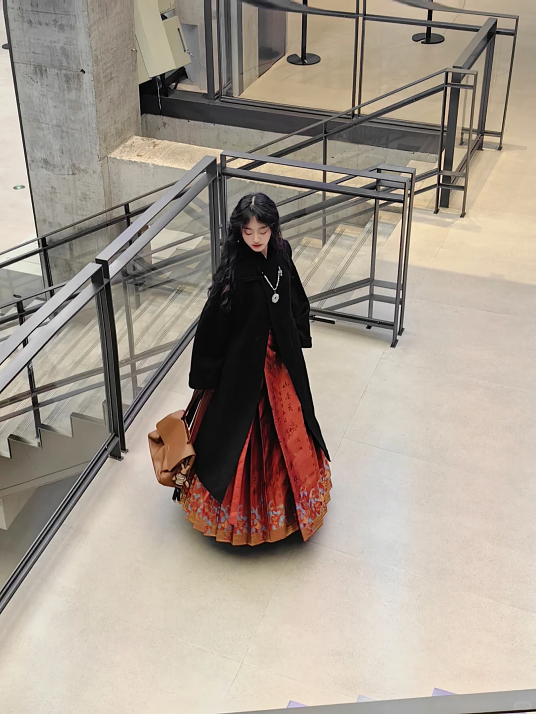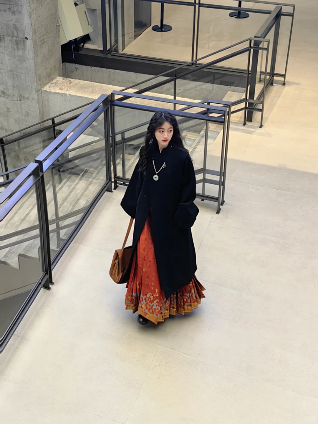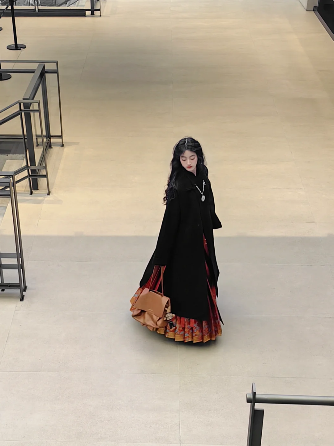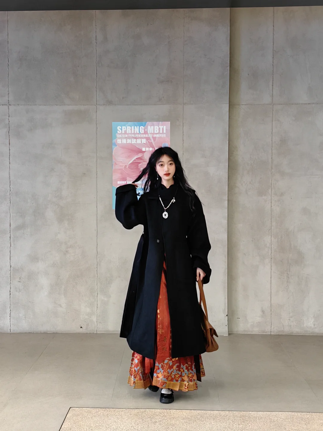 这件大衣绝就绝在步履之间可以漏出马面腰线,显高!