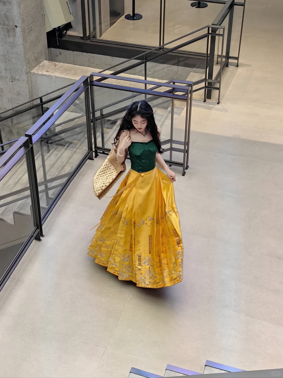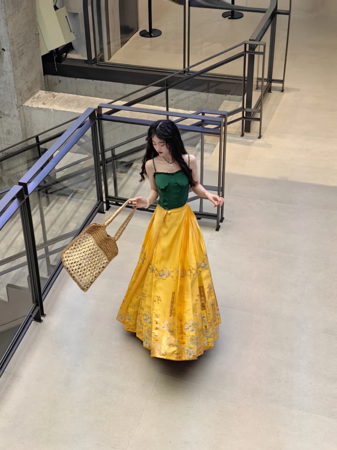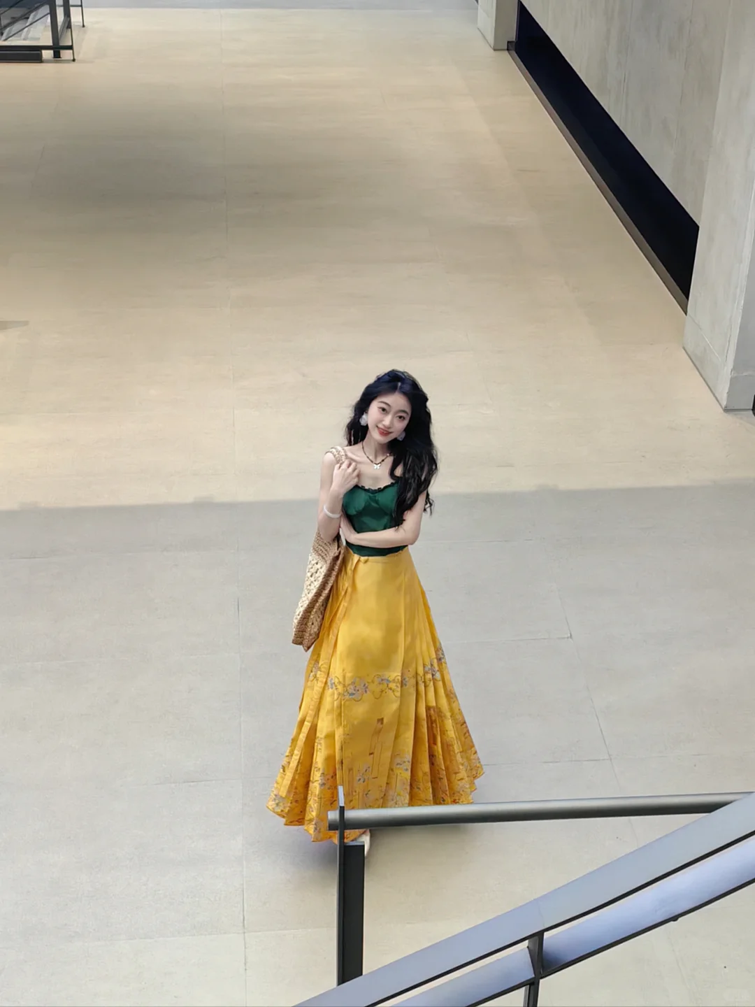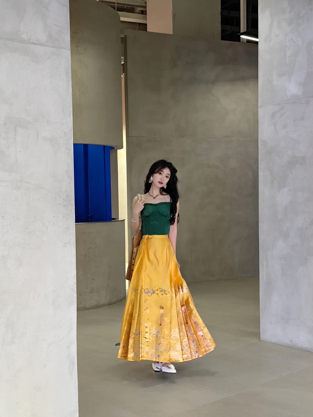 这条明黄色的马面是真的很独特!看到它的第一时间就觉得它超级适合混搭,超级适合明媚度假风。