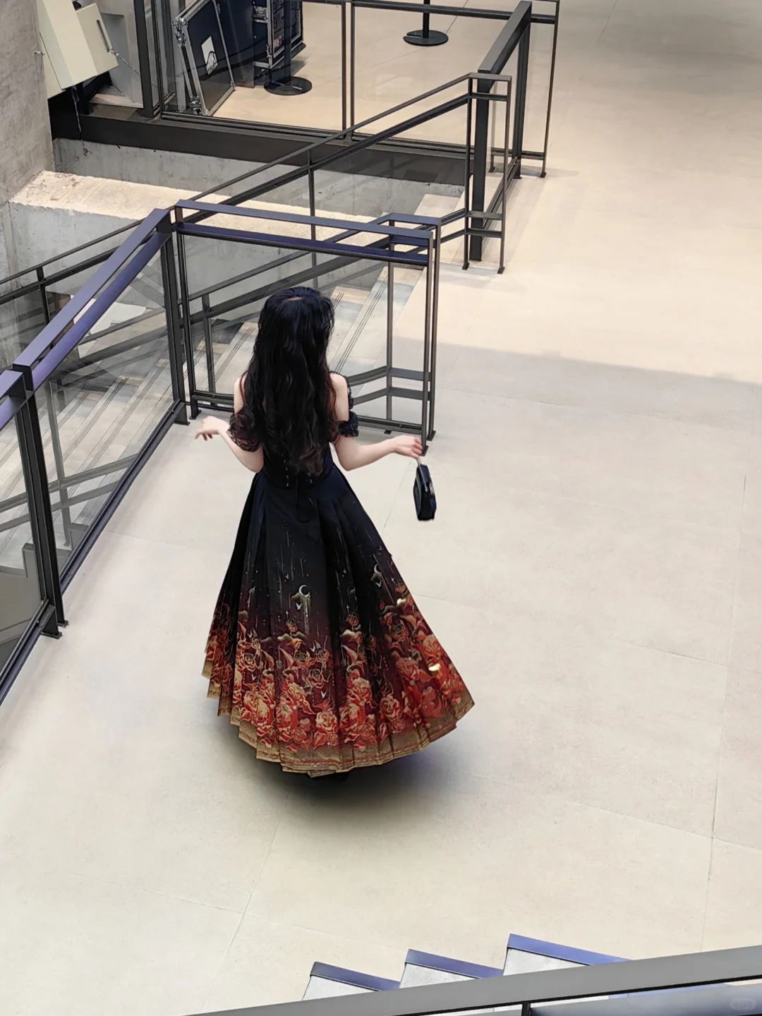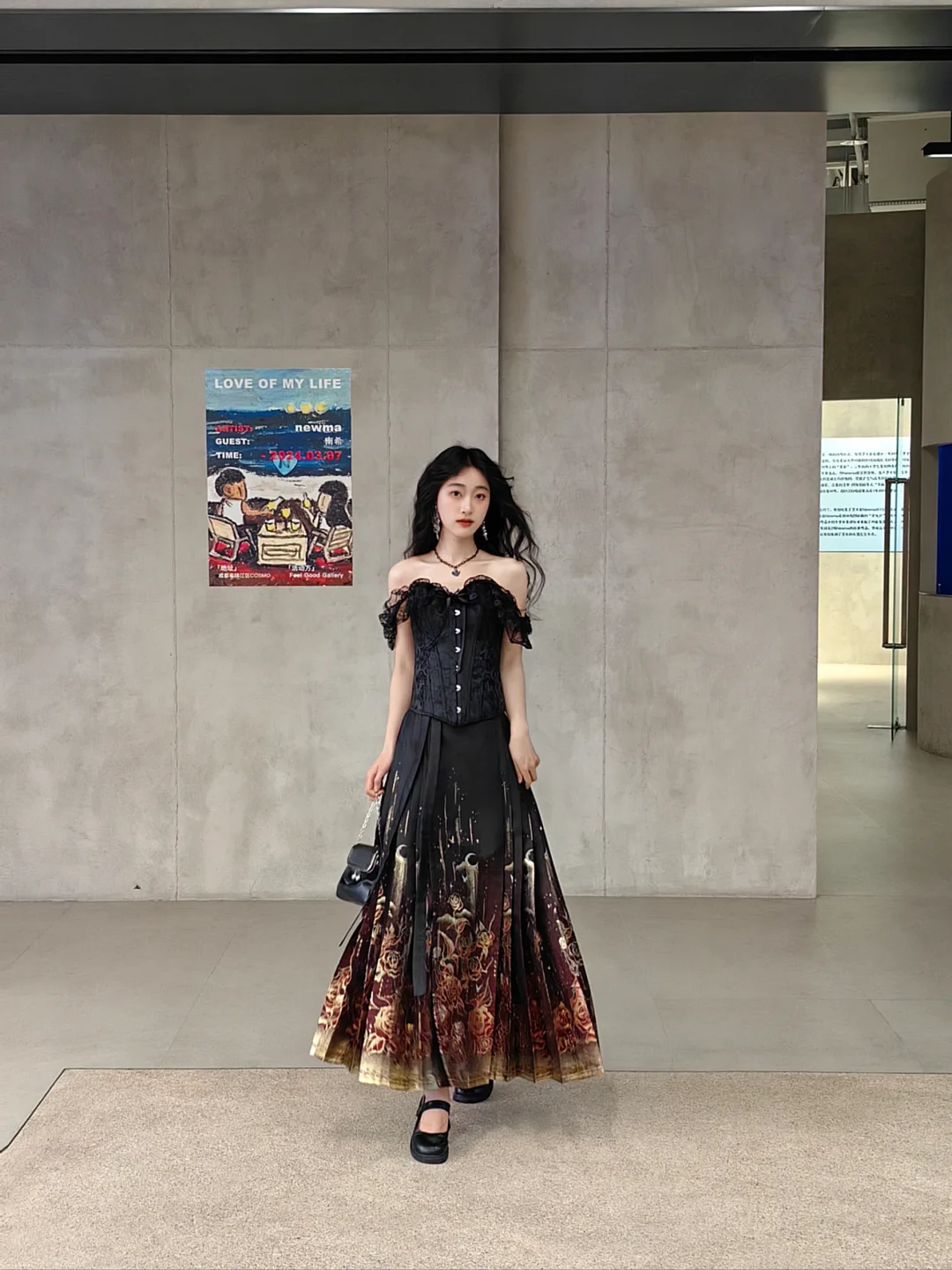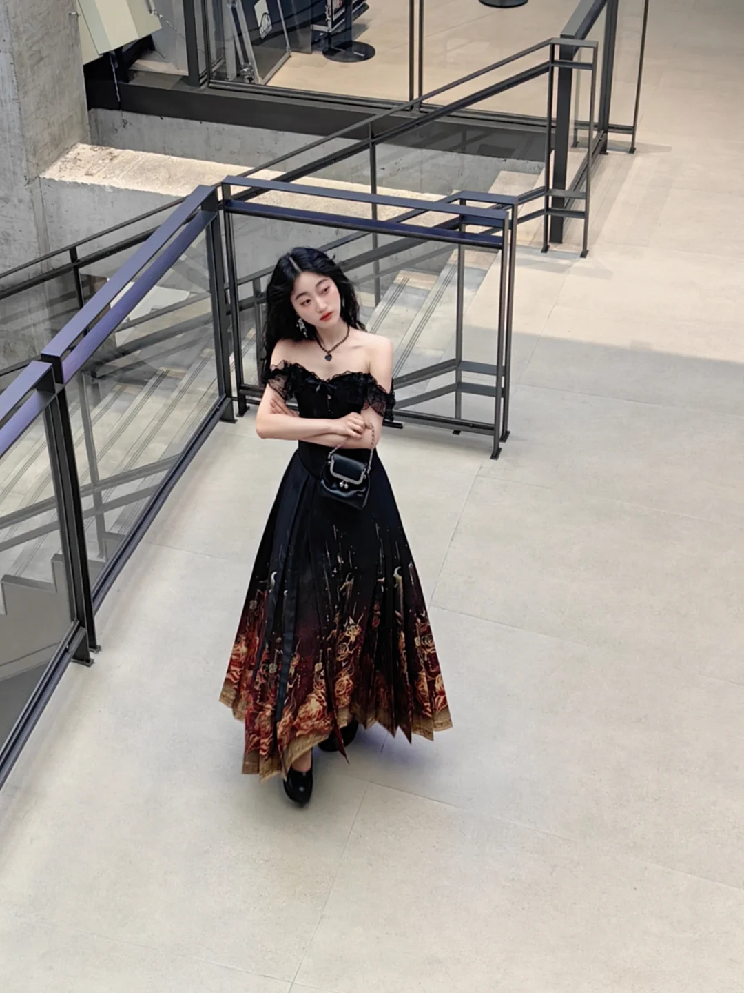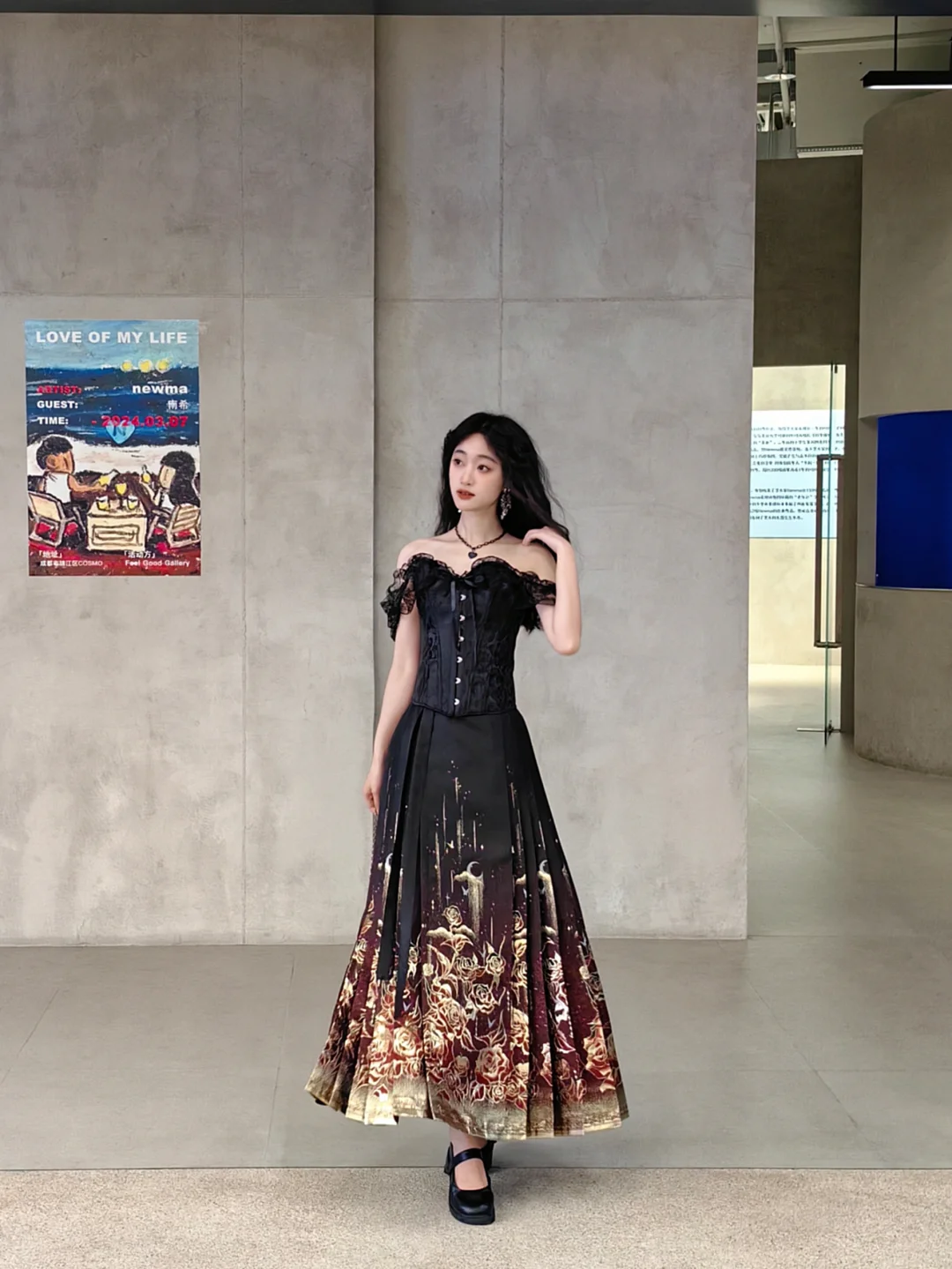 暗夜玫瑰马面裙搭一字肩,诡谲优雅的美。