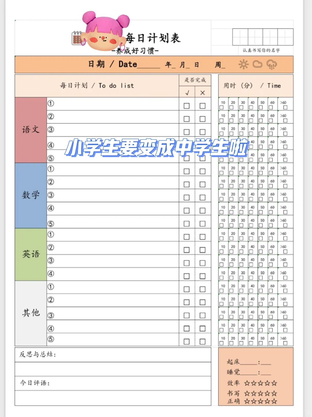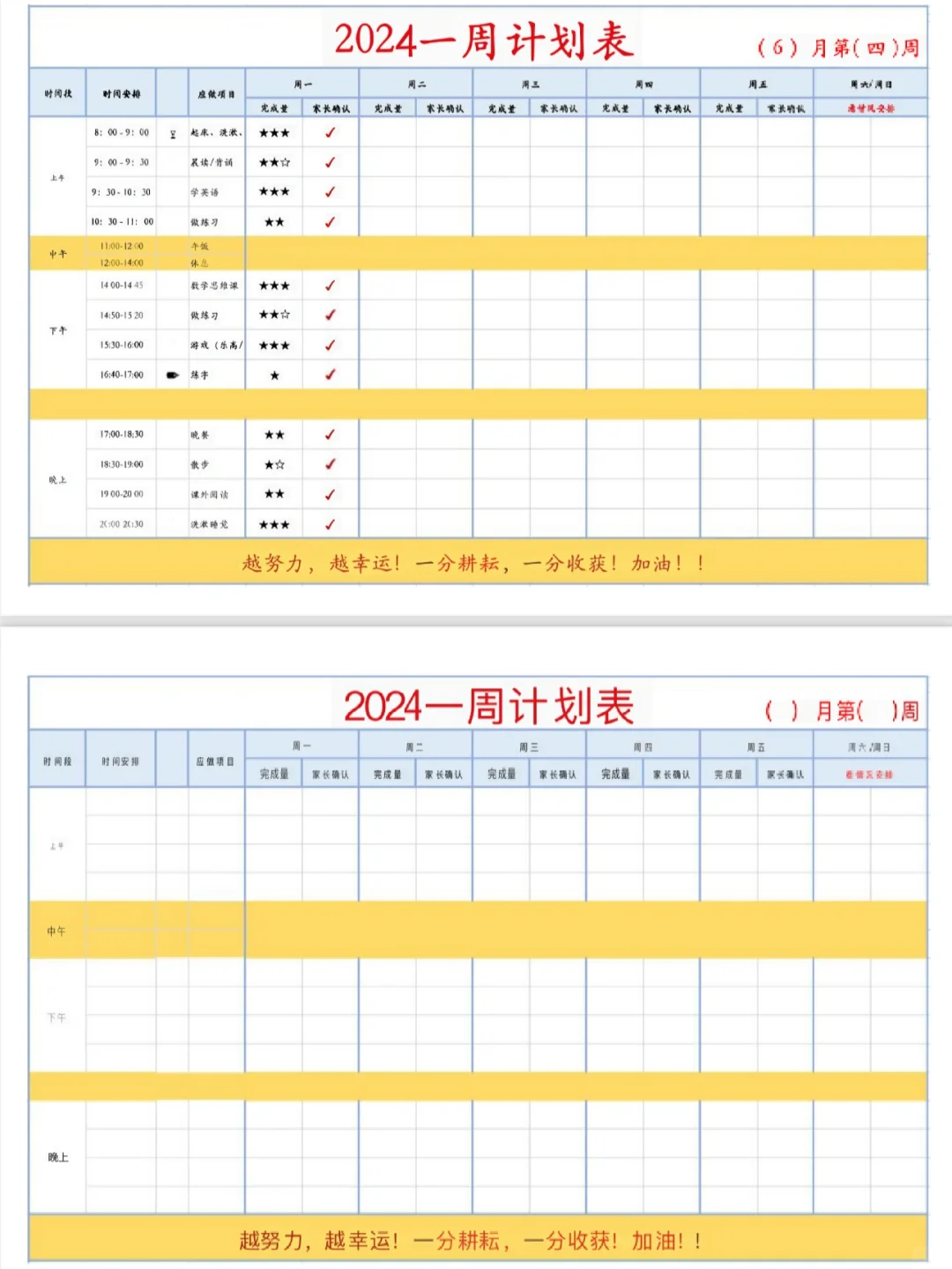 网上很多版本,大家找一份,稍微修改一下,就可以量身定制属于自己的计划表啦。我喜欢可以细化到每天、然后每周总结的。每天✅超有成就感的。