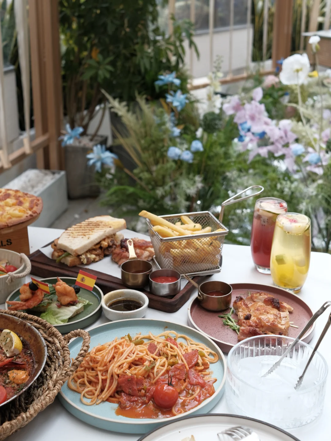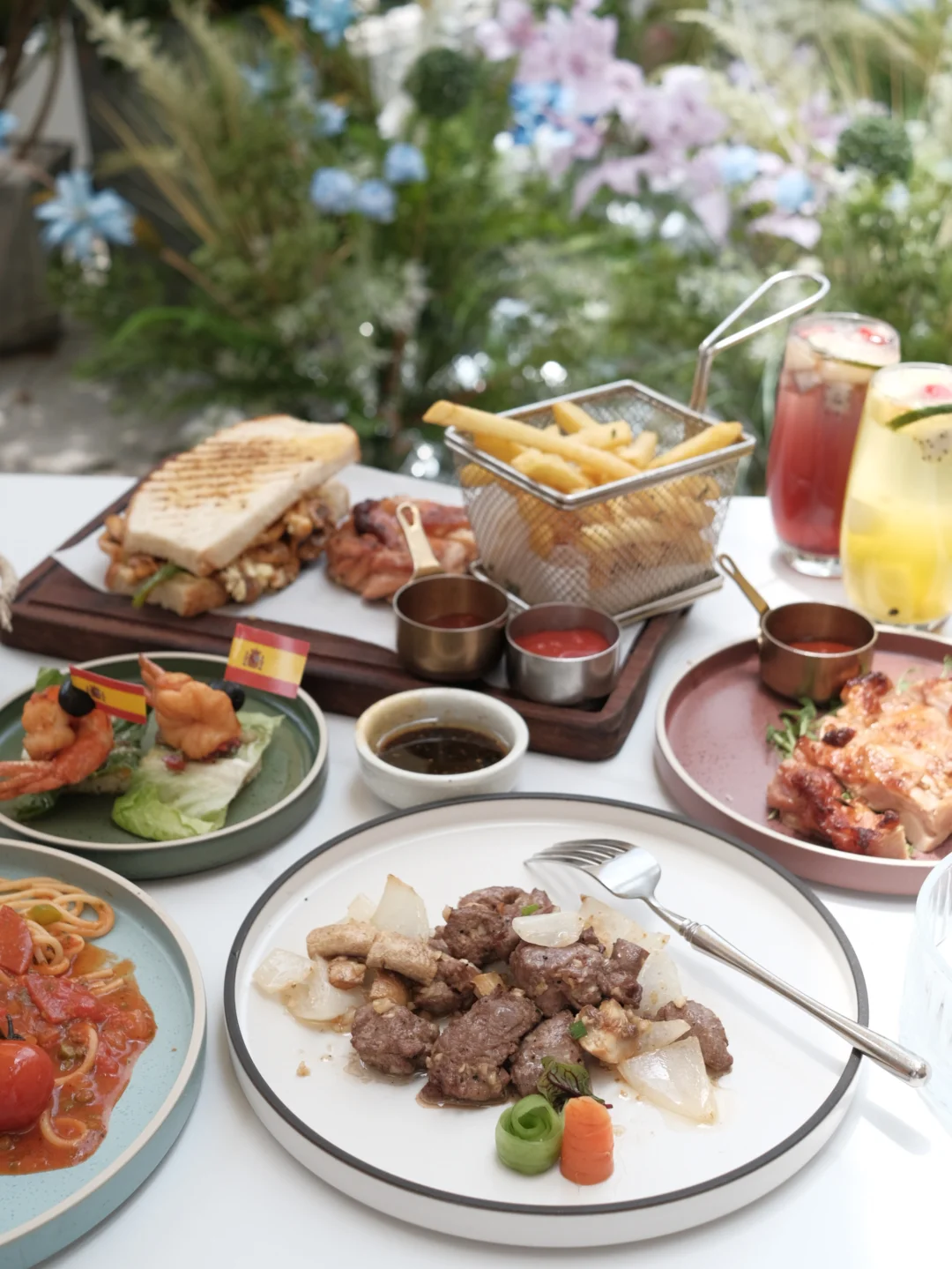 周末和小姐妹坐在花园里吃一顿西餐🍽️