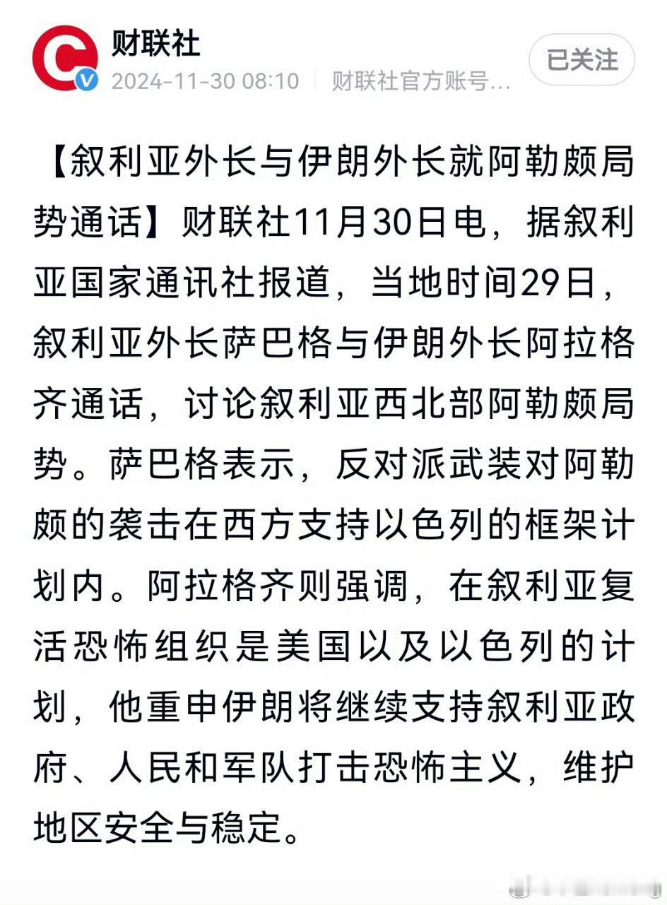 萨巴格与伊朗外长讨论打击恐怖主义,伊朗表示将继续支持叙利亚。