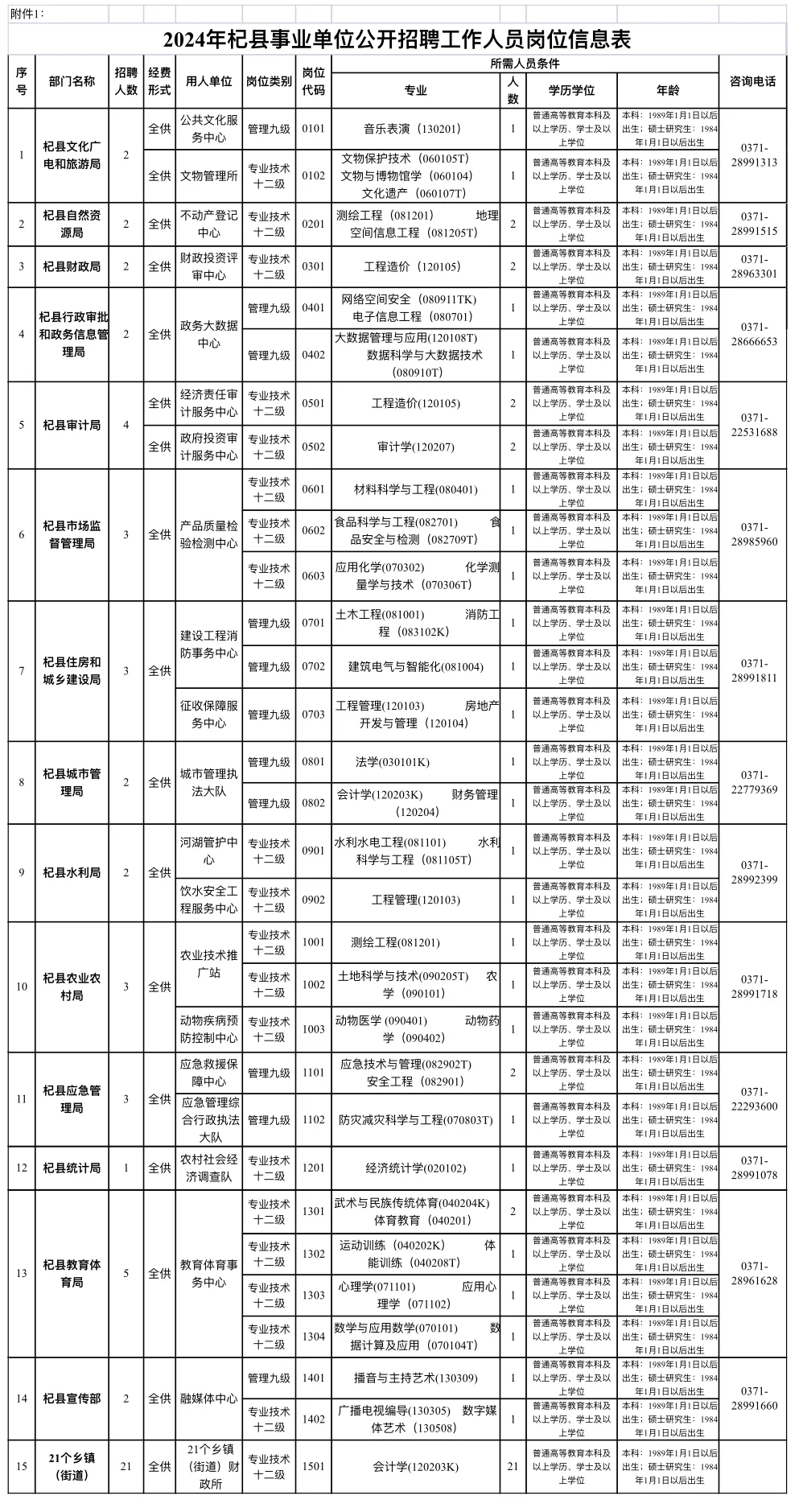 杞县事业编招聘57人