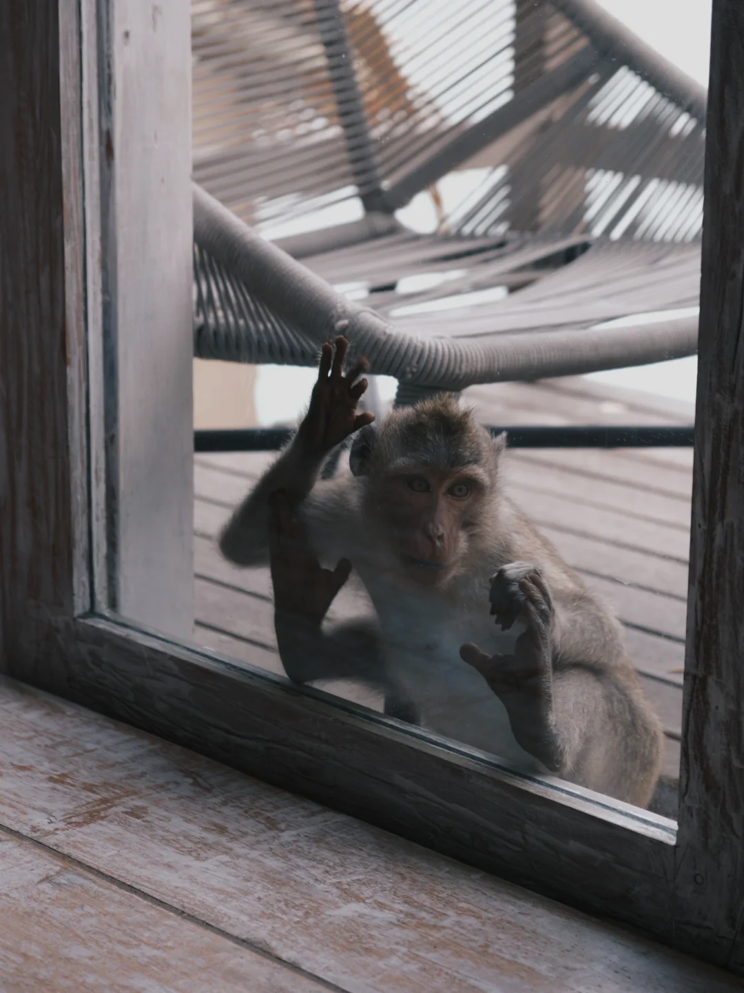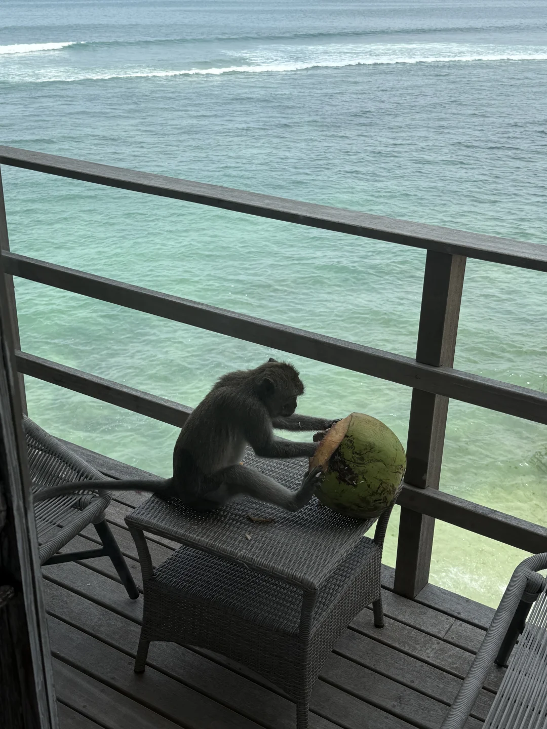 我在拍照📷 它在偷吃我椰子🐒🥥