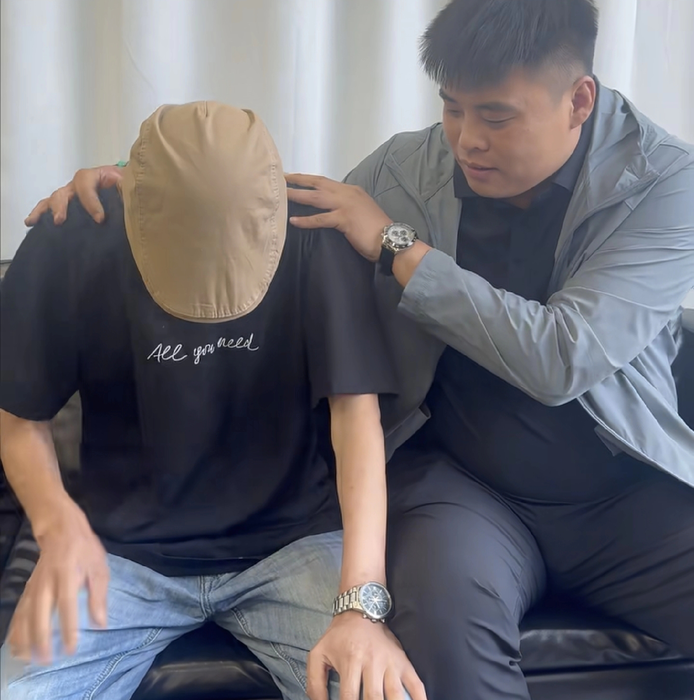 张云鹏堂哥给云鹏爸按摩张云鹏爸爸今天直播有堂哥在现场他也轻松了很多,但是毕竟他年龄也大了,而且身体也不太好,连续直播几个小时身体确实吃不消