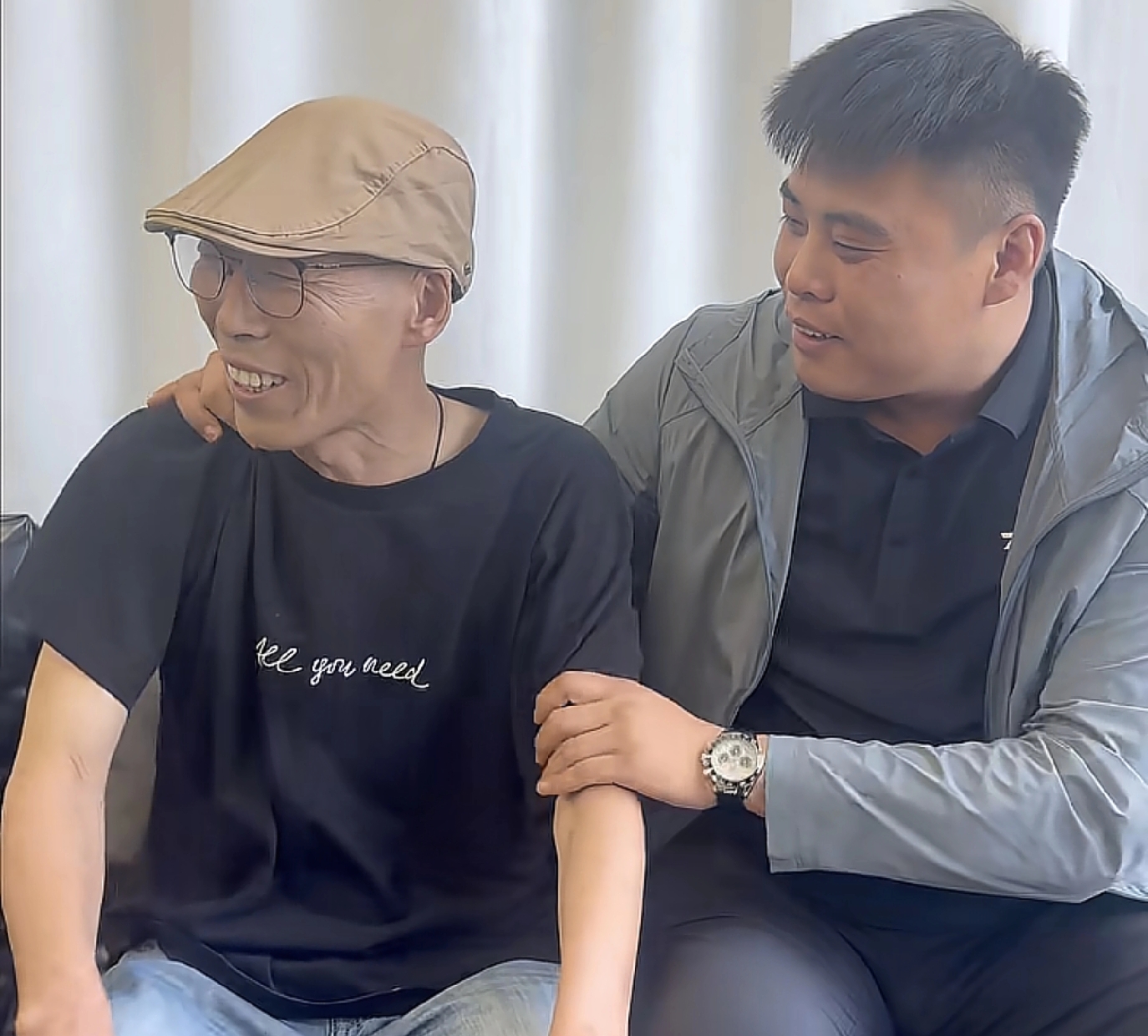 当云鹏爸爸看到坐在他旁边的云鹏后,尽管他身体已经很疲惫,但是面对儿子他还是把笑呵呵的说不要紧