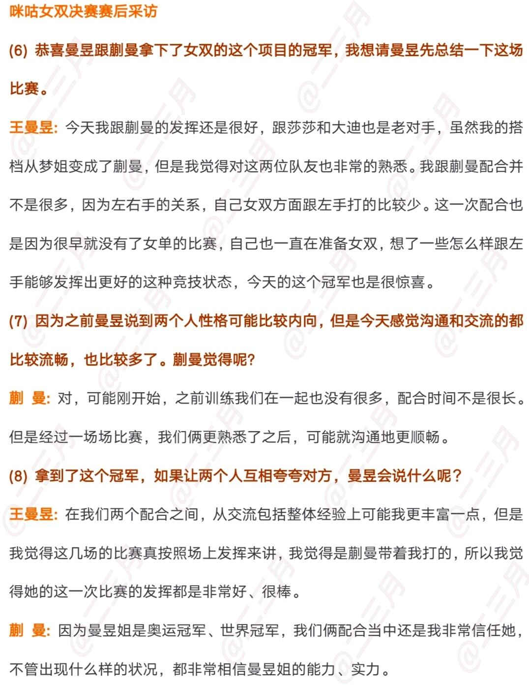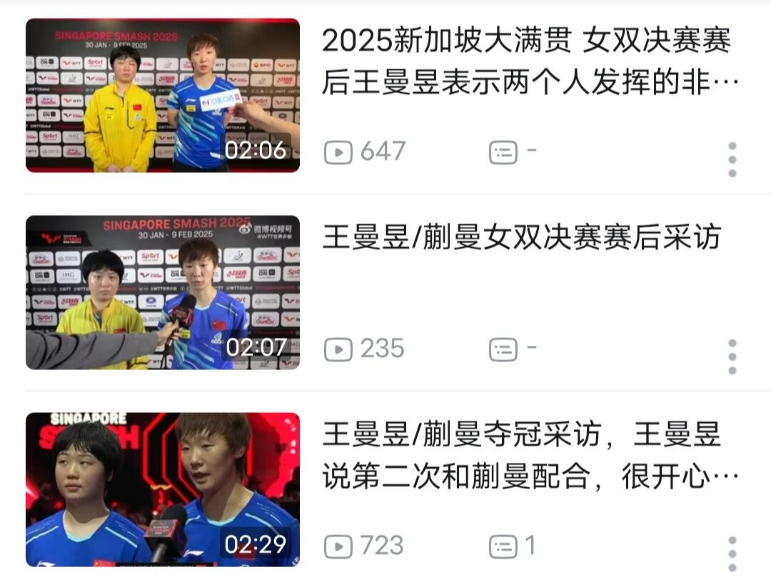恭喜王曼昱、蒯曼获得新加坡大满贯女双冠军。