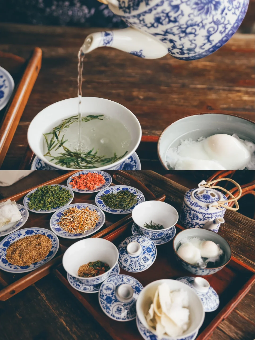 待帝茶🍵绿茶、水泡鸡蛋🥚熏豆茶