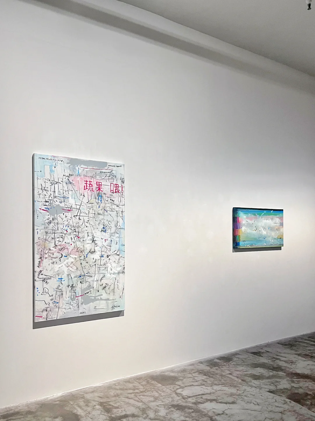 盖亚空间挺特别,阳光充足的时候,画廊能透过巨大的玻璃窗眺望远方的山峦,这一期展览,是艺术家奥古斯特·桑博的首次个人亚洲展,他的绘画充满表现力,线条丰富,色彩缤纷,名为Seasons 季节的主题,似乎给这个初春带来了一丝绚丽。