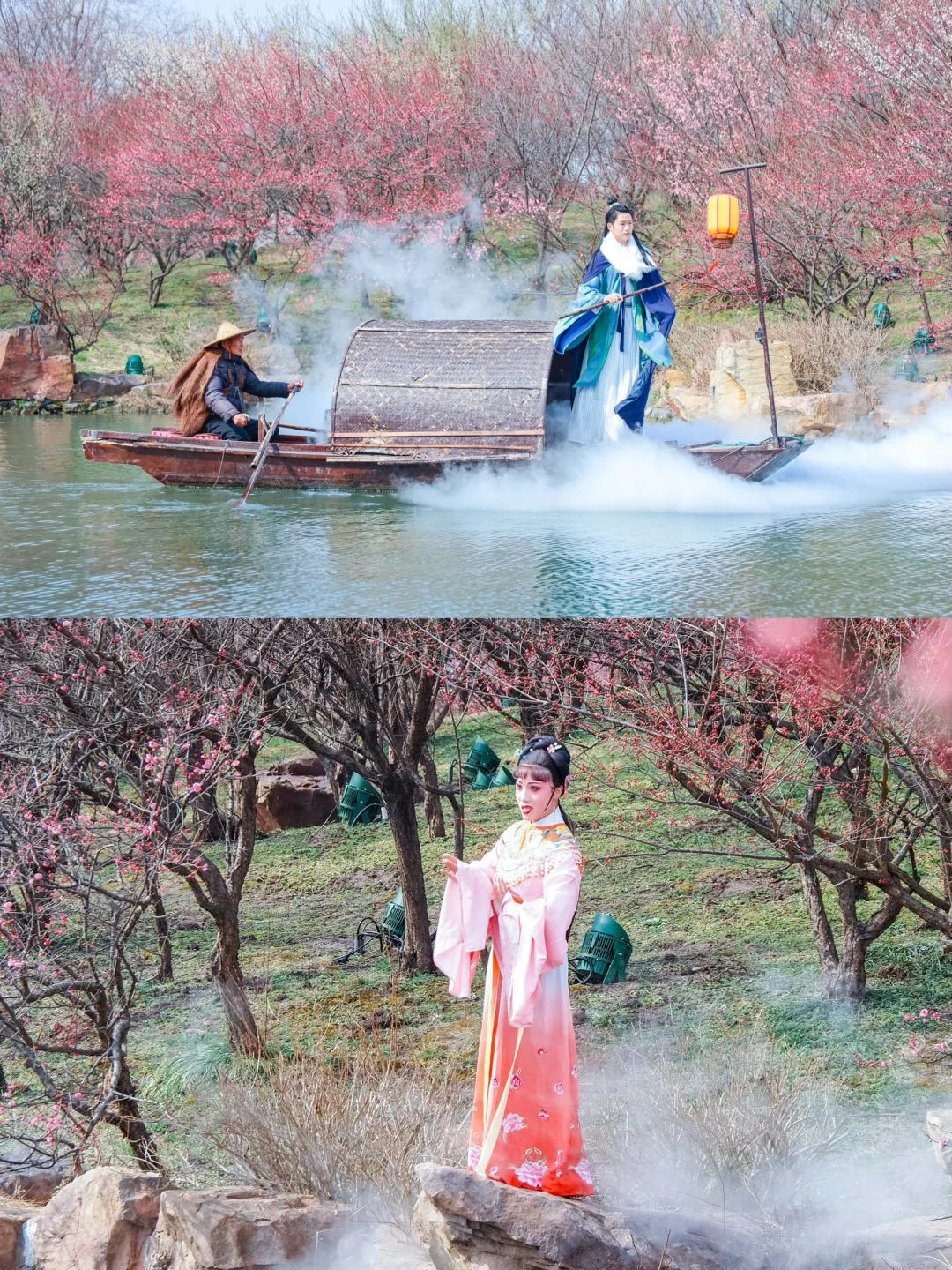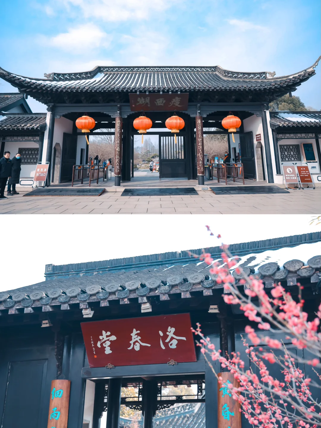 1️⃣从东门入园后,沿着长堤春柳前行,便可看到梅花初绽的景象。再往前,万花园内的梅花更是品种繁多,如白、粉、红等,各色梅花竞相开放,如诗如画。继续前行,到达九曲桥附近、玲珑花界和望春楼以东,都是赏梅的绝佳地点。如果时间充裕,还可以乘坐游船在湖上欣赏梅花与湖光山色的美景。
