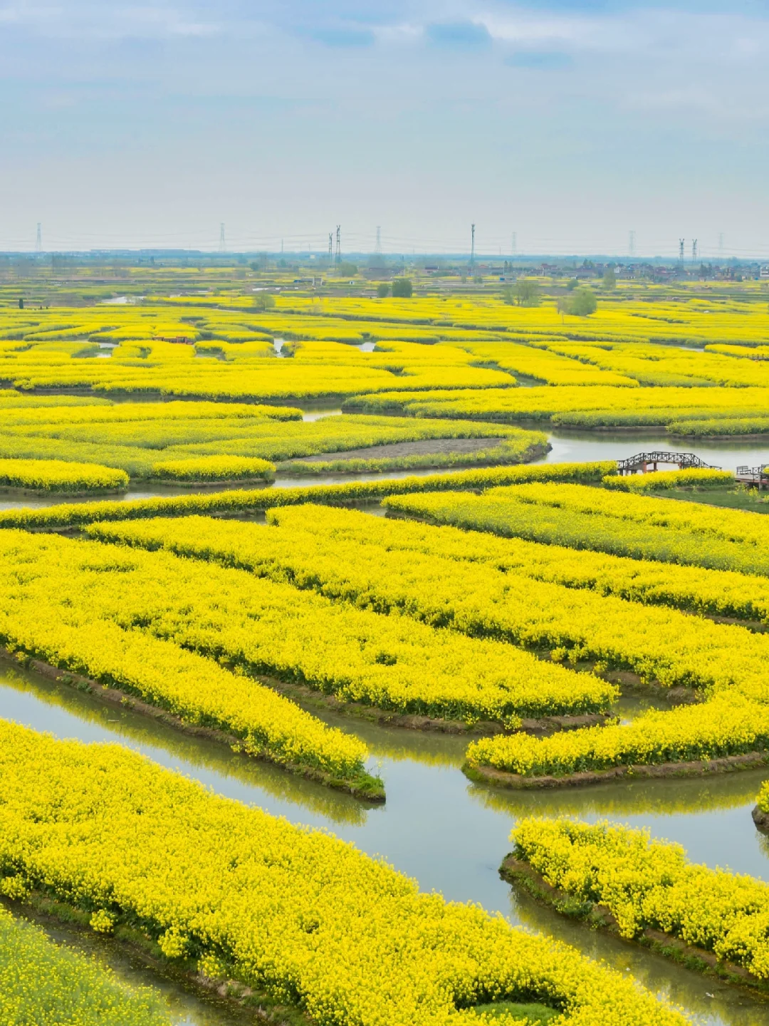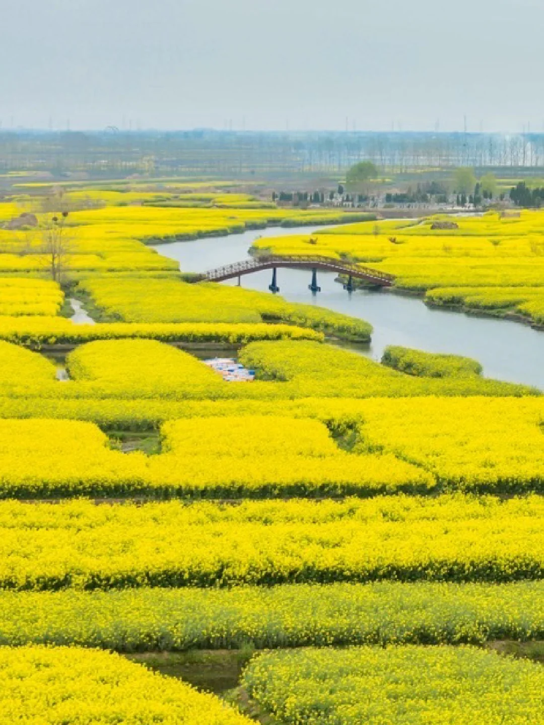 当你来到这里,看到眼前的景象,就会瞬间秒懂——“河有万湾多碧水,田无一垛不黄花”正是兴化垛田菜花的真实写照🥳