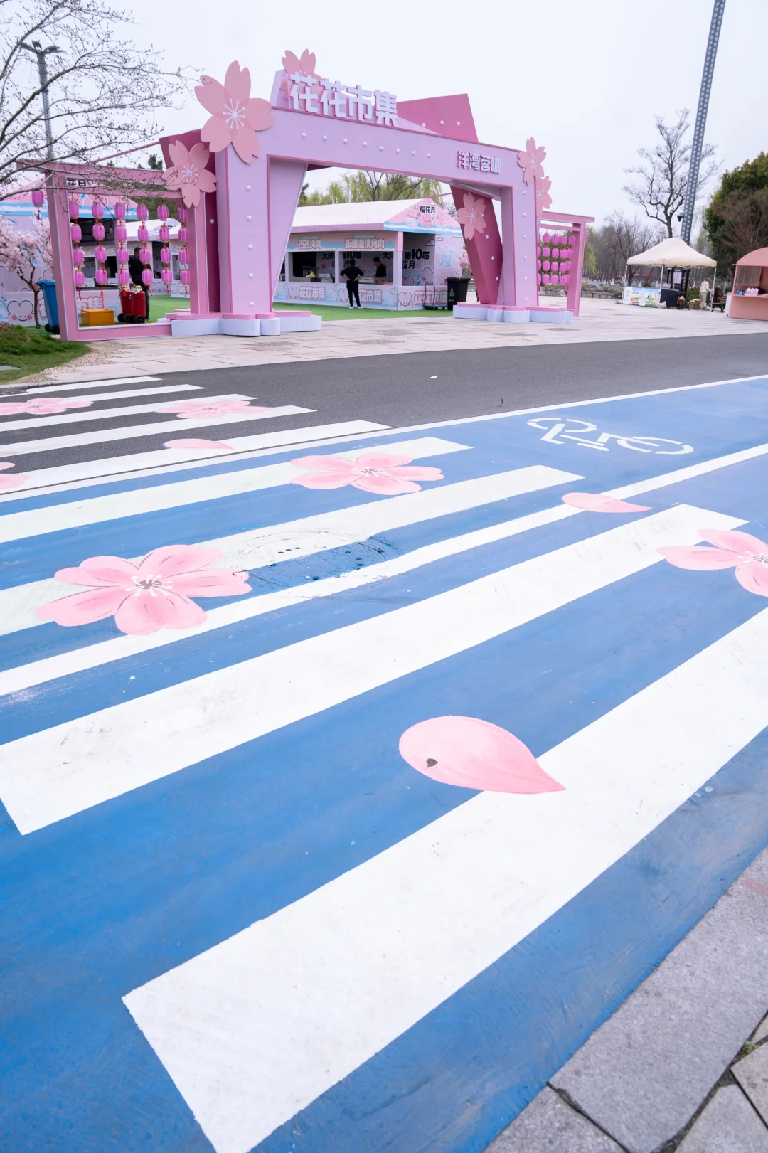 樱花斑马线、悬浮花艺城堡、龙猫花车、爱心樱花迷宫、“我爱盐城”打卡墙、爱心熊(在樱花大草坪)、巨型花蝴蝶、樱花隧道