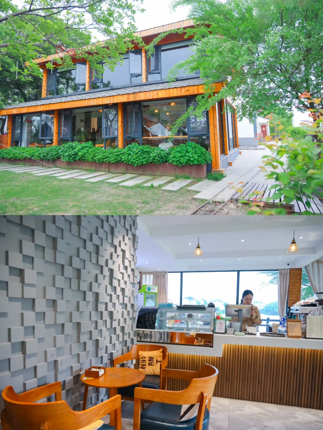 啾啾小站是个咖啡店,两层楼,很文艺,周边靠着湖,绿树成荫,正门口有几颗大树,树下摆放着桌椅,很适合下午点一杯咖啡(价格还行,大部分都在20-30元之间),和三五好友聊天发呆,惬意生活最好不过了。