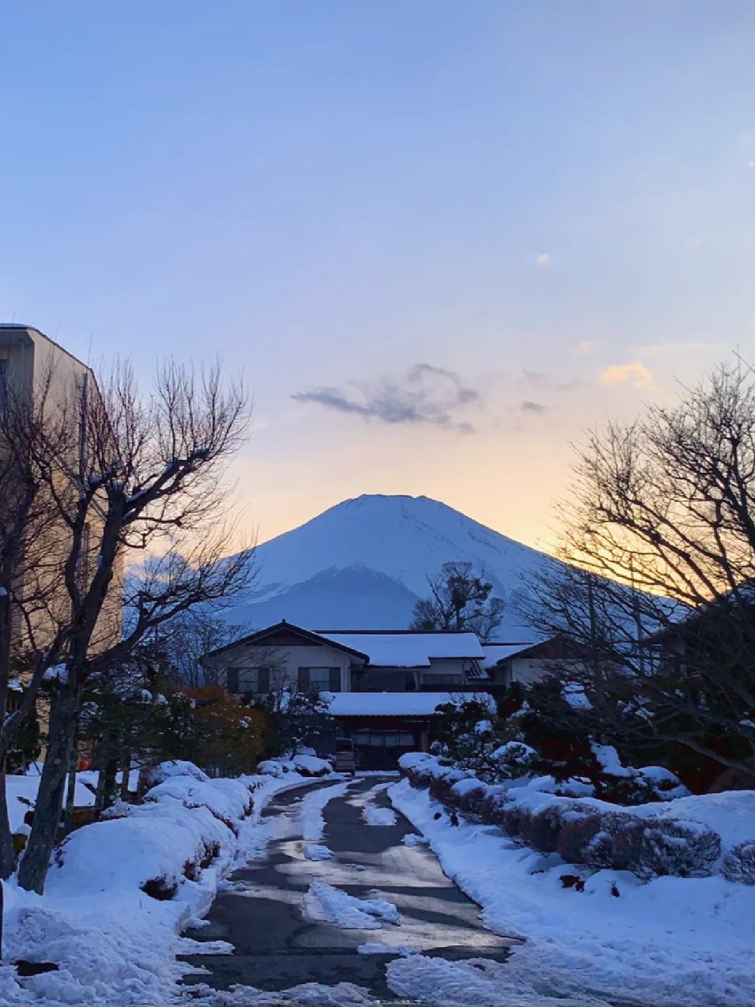 昨天傍晚🌆在山中湖看到了——酒店后面山景就是富士山,图2️⃣