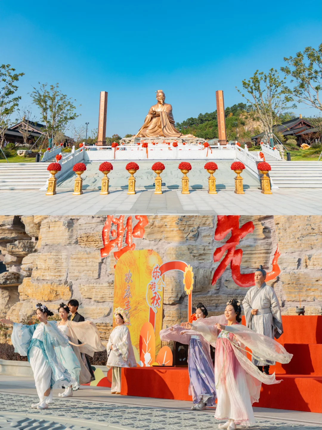 这里充满了历史文化底蕴,园内的景观设计很精巧,如唐式建筑正门、象耕鸟耘雕像、四口古井等,生动再现了虞舜故事,弘扬了虞舜精神。