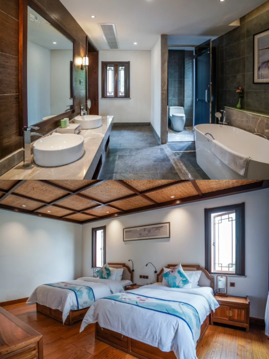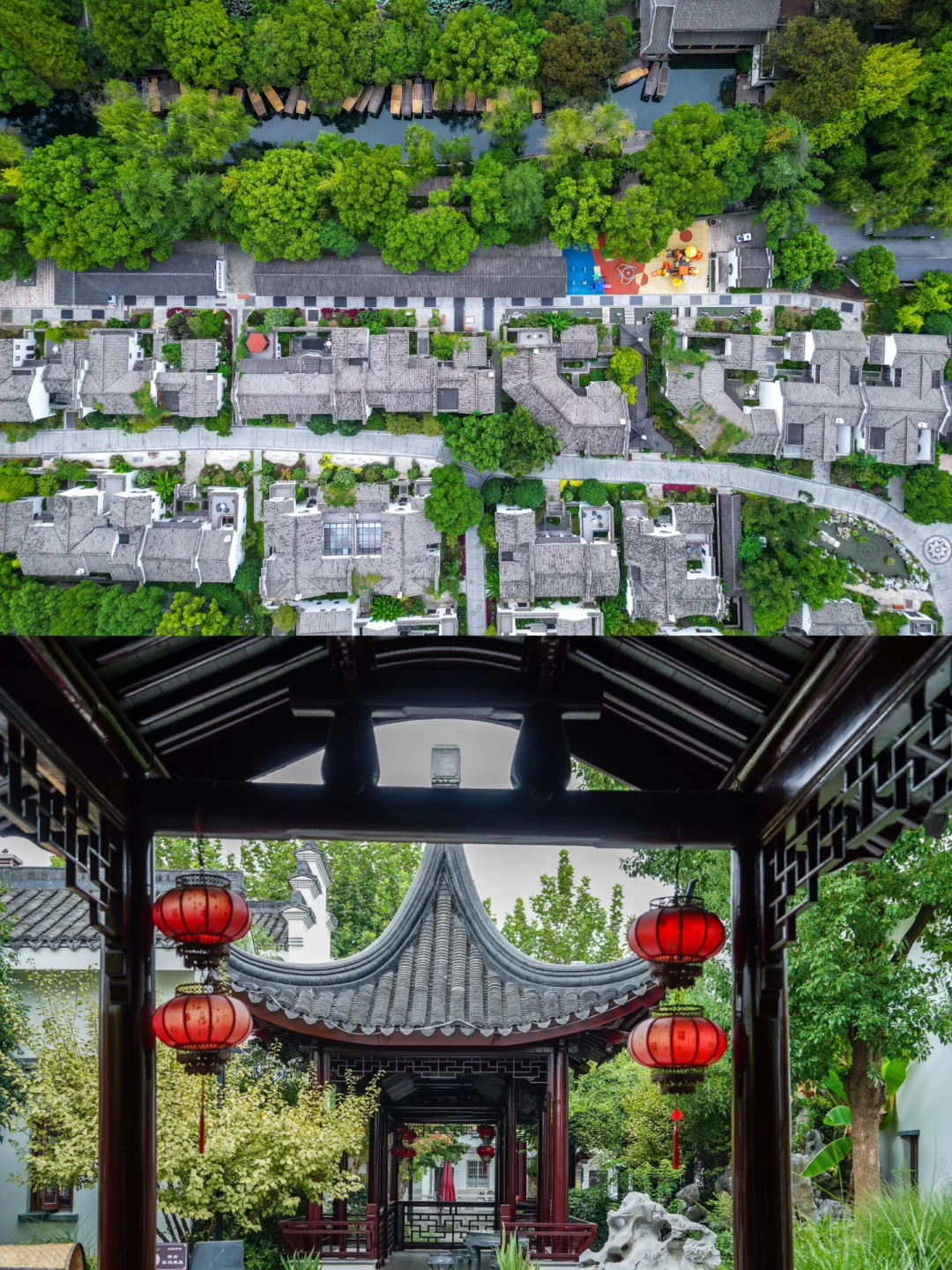 与南浔古镇只有一墙之隔,酒店外观和古镇融为一体,当徽派建筑的白墙黛瓦和苏州园林的景观结合,一下住到了江南里。
