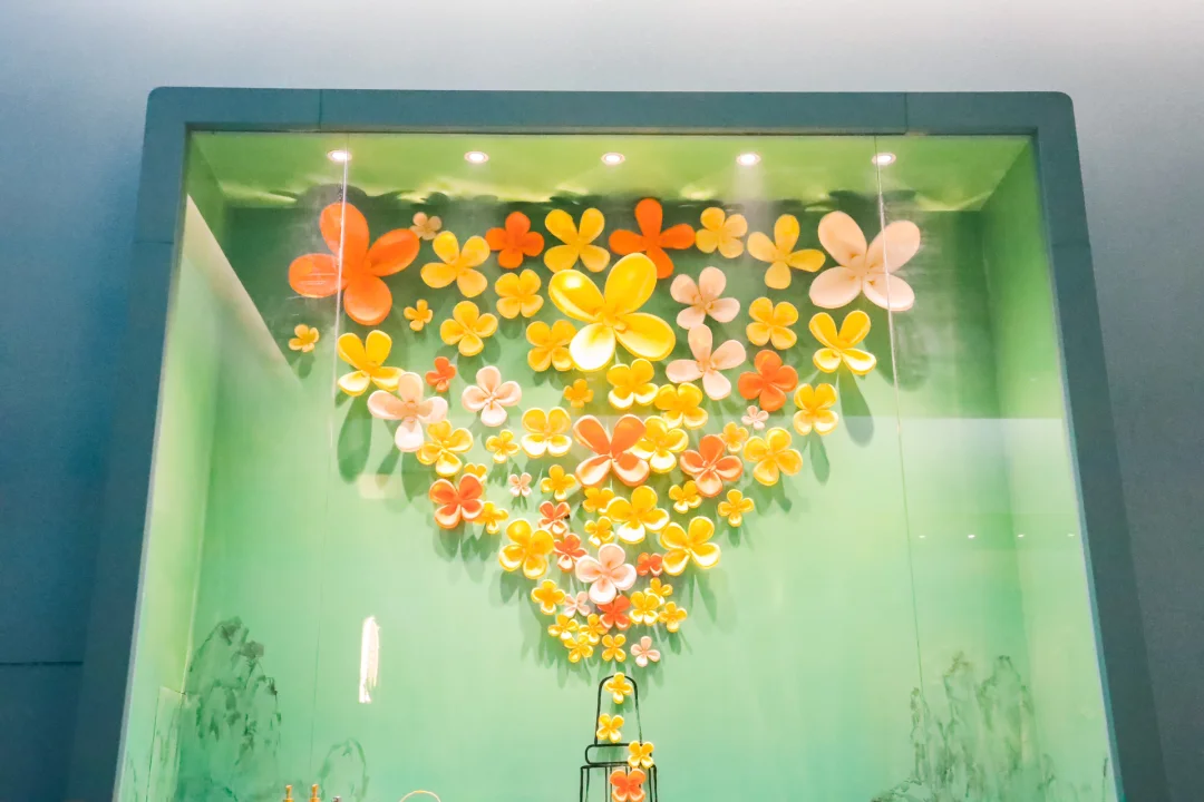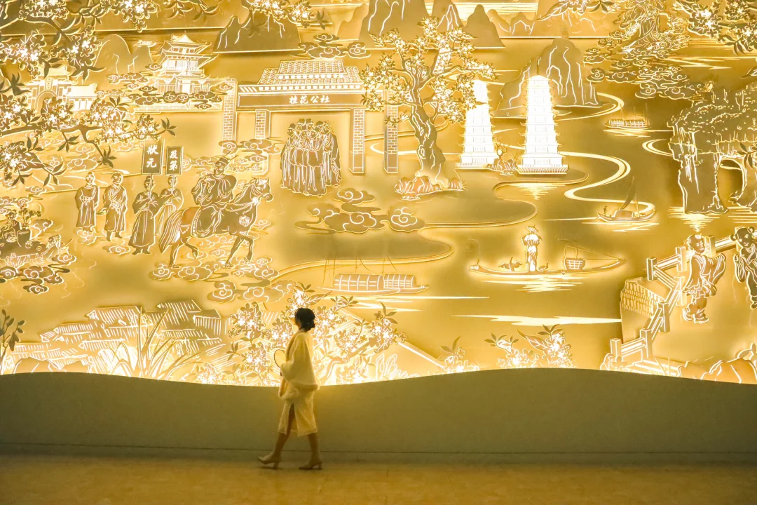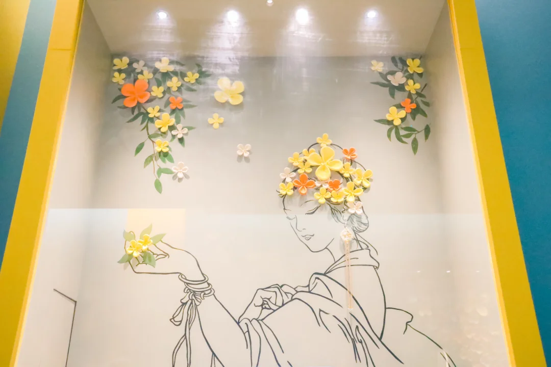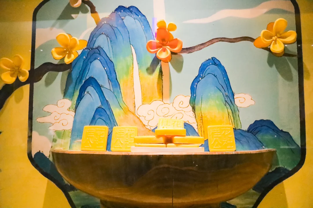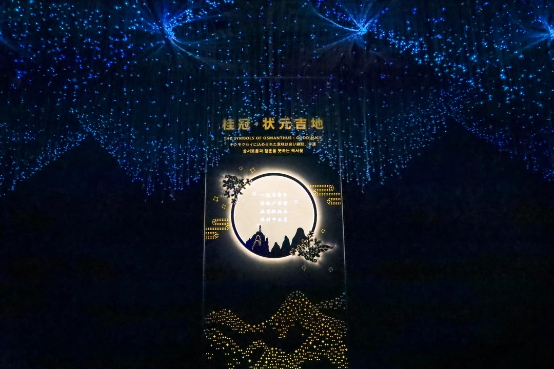 桂花文化体验馆是来这里,第一个要去看的,这里会有超级多关于桂花🌸的历史、文化、知识,还可以沉浸式的体验。在这里,不仅可以简单距今一万年的桂花种子(这是现存最古老的桂花种子),还能看到一幅让人惊叹不已的叠彩画——迎宾图。