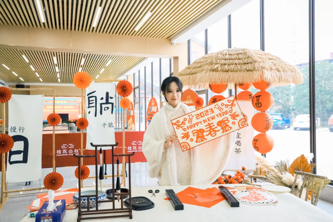 🥳🥳在这里,不仅可以喝到酿制的桂花酒,还能亲自动手做一份桂花糕,不会做的也不用担心,会有糕点师傅给你做讲解的,按照步骤一步步来就可以了,待到成品时,会有一份说不出的满足感,特别适合带小朋友👶🏻一起来。此外,还能学习剪纸,这些都是新年的味道。你看我自己剪出来的是不是很厉害。