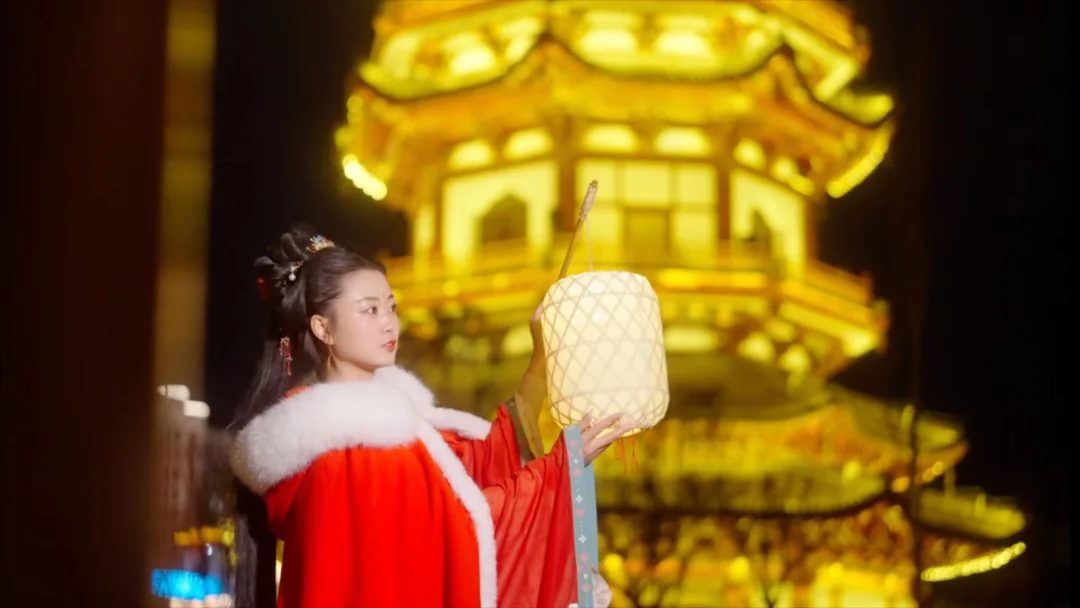 在我的院子外能看到唐园的夜景,这里也是西昌的地标打卡点,来的人非常多。