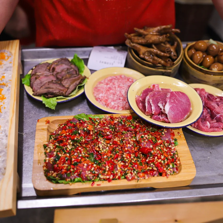 这家的菜都是装在一个个小土碗里的,不过量很足很新鲜,我炒鸡爱吃这里的虾滑,上面撒了很多鱼籽,吃起来真的炒嫩炒Q滑啊,绝对是必点的一道!要命但又很好吃的麻辣牛肉,炒鸡的辣嗓子,建议能吃辣的宝宝们一定要点,肉质炒嫩!红糖糍粑外酥里软,很好吃,基本上一大半都是我一个人解决的hhh~鸭血真的是令我灰常惊艳吖,鲜红的鸭血入锅一会儿就捞能起来了,一口下去,灰常的鲜!嫩!他家的梅子酒我炒鸡推荐,很好喝的,尤其是冰镇的梅子酒