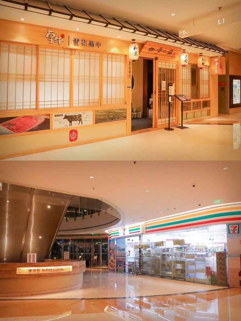酒店会两期,二期是新的,办理入住是分开的,餐厅是共用的,现在疫情期间,二期的门不开,只预留了一期的,大堂联通着。此外,这里也不单单只有酒店,一楼还有理发店、日料店、药店、7-11便利店🏪以及购物店,类似一个小商场。