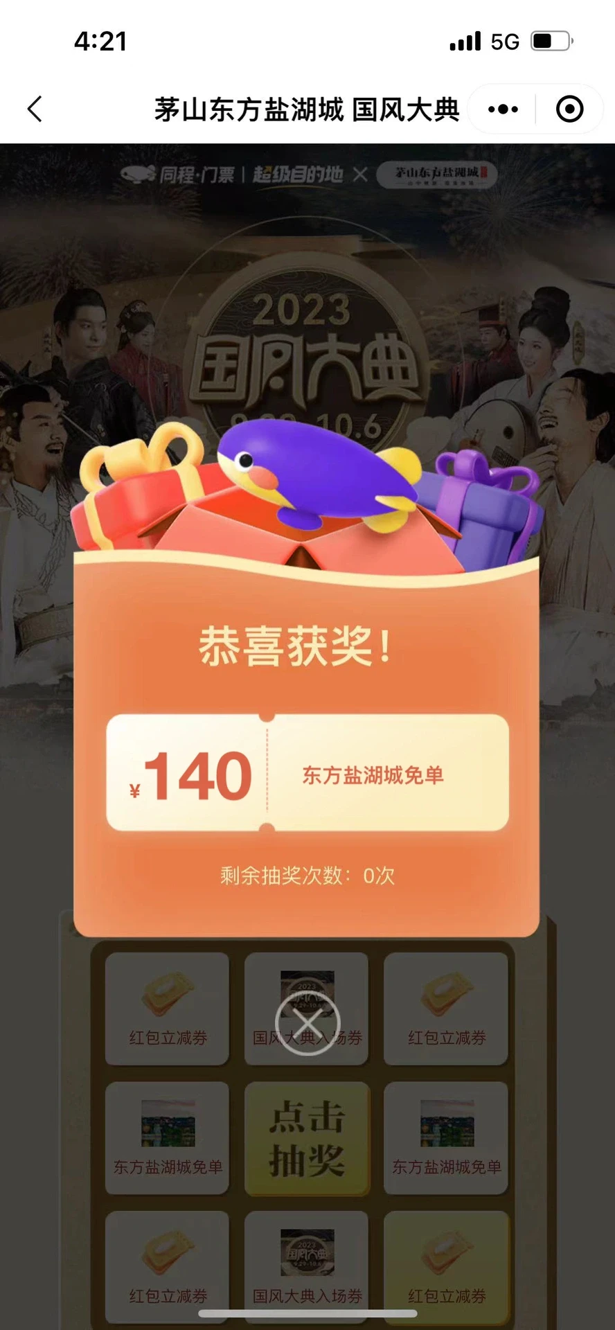 我竟然在同程抽到了东方盐湖城的国风大典入场券~