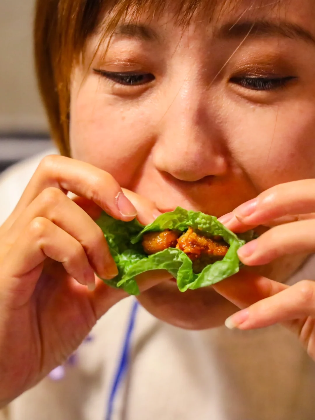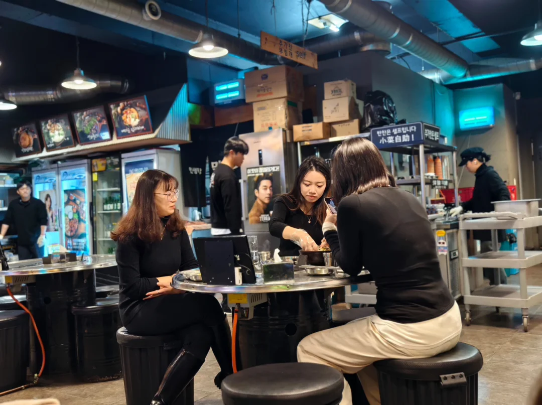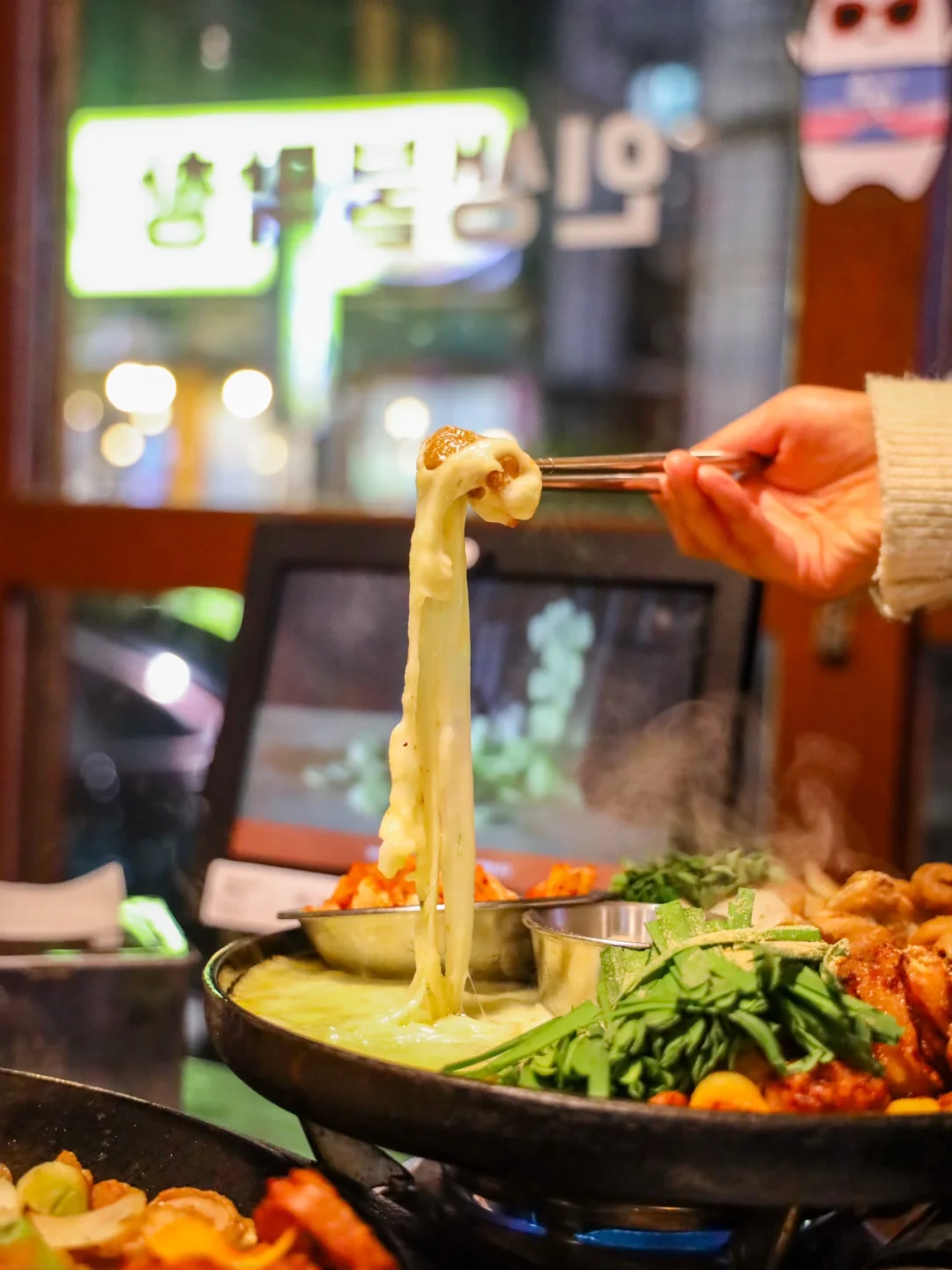 4.7w韩币,肥肠两种口味,原味和辣的,其中配了芝士,有芝士作为蘸酱才是灵魂啊。烤的大肠,外面脆脆的,怕腻的话,可以搭配着小菜吃,还可以包着生菜吃!!(发现基本任何一家店,都会送很多小菜🥗)不爱吃肥肠的人可以点别的~~