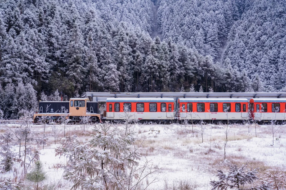 在景区里看到白雪皑皑的童话世界,还可以在明月山脚下坐小火车🚄去明月山滑雪体验中心滑雪🎿,体验雪中飞驰的快乐,感受风在耳边呼啸的声音,一路还能欣赏沿途山色。这里无论是初学者还是大人小孩都可以滑,而且有设备租赁,很完善,只要你来了就行了!
