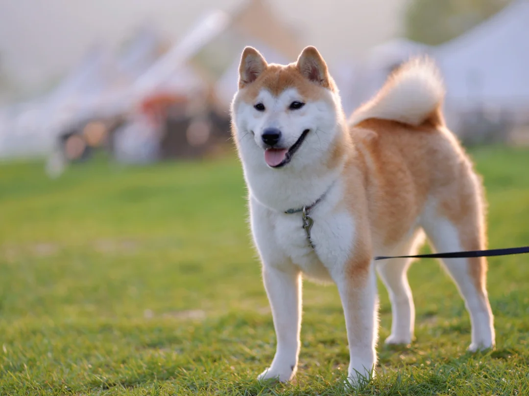 迎着夕阳在草地上耍着,