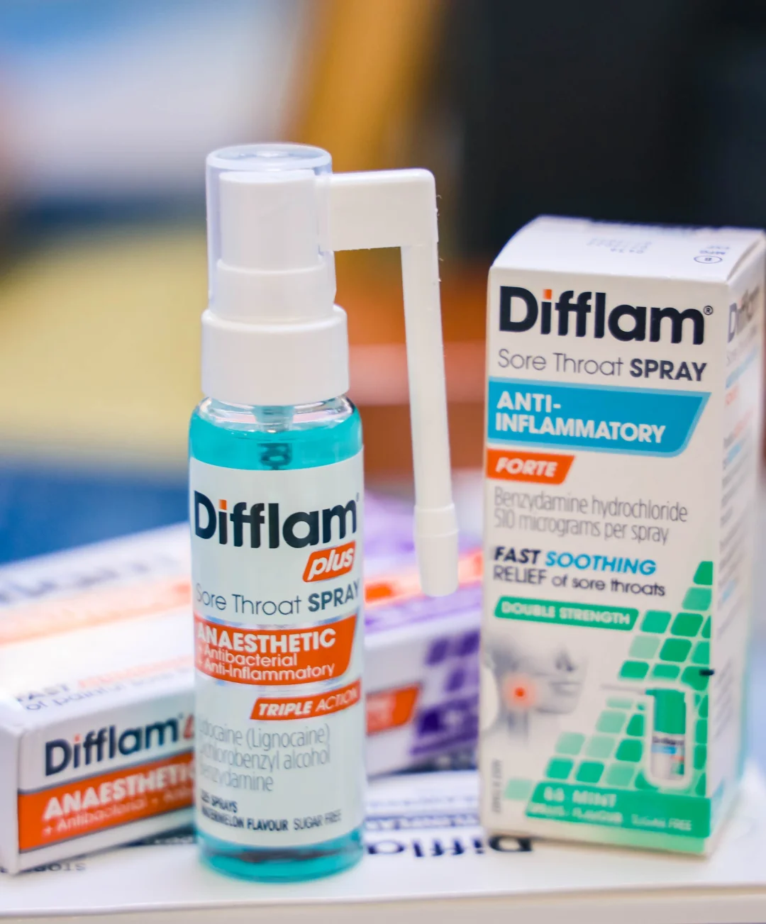 1)Difflam 双倍喉咙喷剂:薄荷味,15毫升,可以用一段时间,可以杀菌、消炎和缓解疼痛。