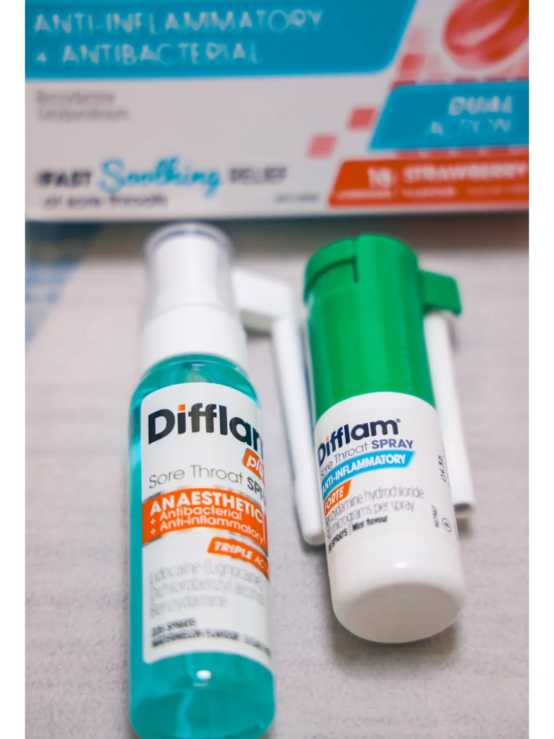 2)Difflam 加强版喉咙喷剂:口味不一样,是西瓜味,多个强效镇痛的效果。