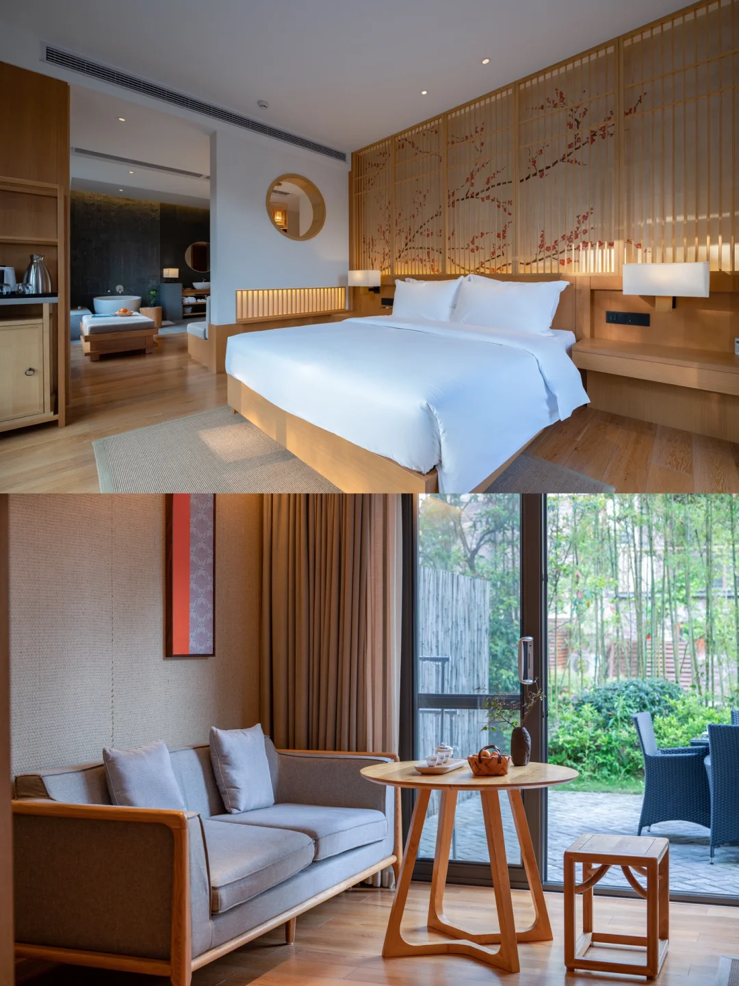 位于武夷山度假区内的梅溪河畔,庄园内环山绕水,坐拥武夷秘境风光。这里有舒适山景套房、独立庭院房、露天泡池榻榻米房、园景复式套房等多种房型。山、林、竹、石营造出的空旷私密空间,将大自然的美融入房间的每个角落,自然与禅意舒缓人心,也让每一颗逃离喧嚣的心,在此地静下来,真的是一个不可多得的选择之一。