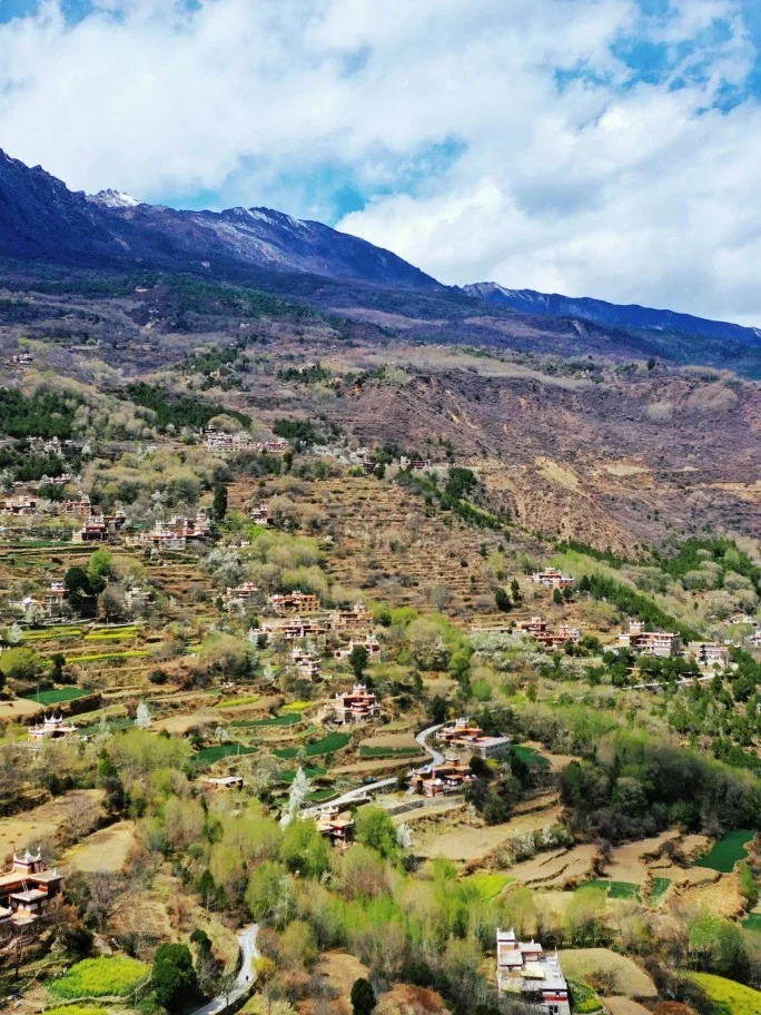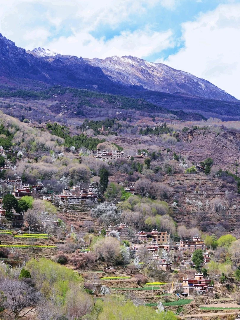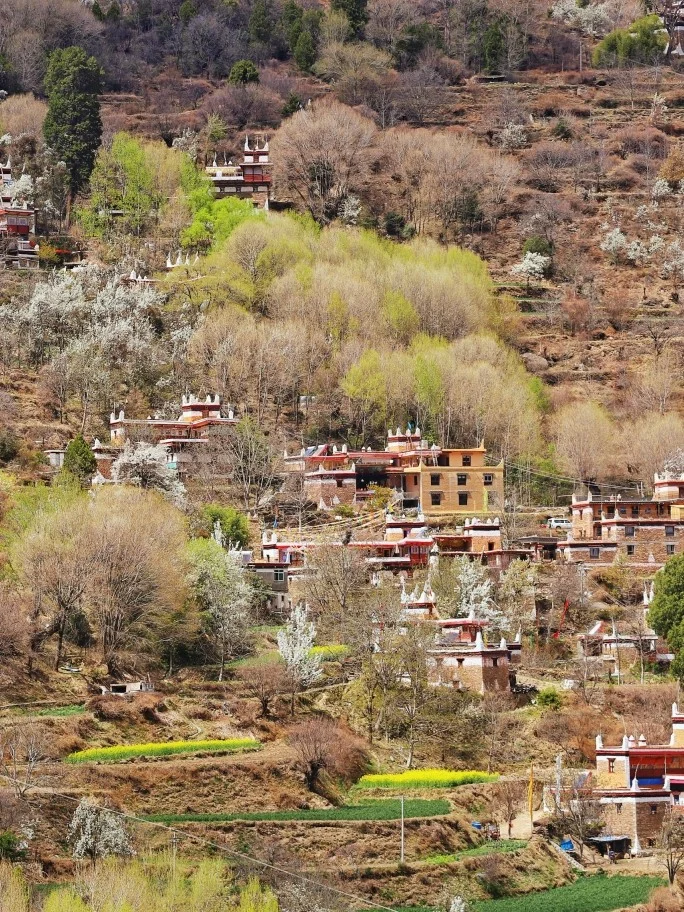 春天的甘孜州也太漂亮啦!!!这个春天我们一起去甘孜州看看吧!甲居藏寨,这个寨子誉为中国最美村寨一点都不为过!“甲居”,藏语是百户人家之意。藏寨从大金河谷层层向上攀缘,一直伸延到卡帕玛群峰脚下,整个山寨依着起伏的山势迤逦连绵,在相对高差近千米的山坡上,一幢幢藏式楼房洒落在绿树丛中。最近的梨花开了,更加的为藏寨增添了几分春色!油菜花镶嵌其中,更是越发的美丽!!!!