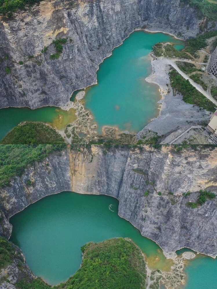 重庆渝北矿山公园,🤩被网友号称重庆小九寨,矿山面积很大,大约有39个坑,据官方说最美最大的是11号坑。💦每个坑的颜色都不太一样,有的很蓝,有的是翡翠绿,还有渐变色~