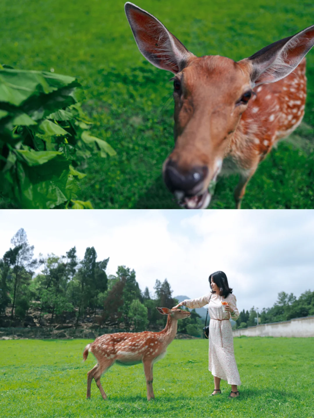 🦌不用去日本奈良也能看梅花鹿噢,大的小的一共十几个鹿圈,总共有三百多只鹿,公鹿很好看,一般情况会放几只到十几只出来看客人的多少。🌟周边还有溶洞、彩林、古镇!