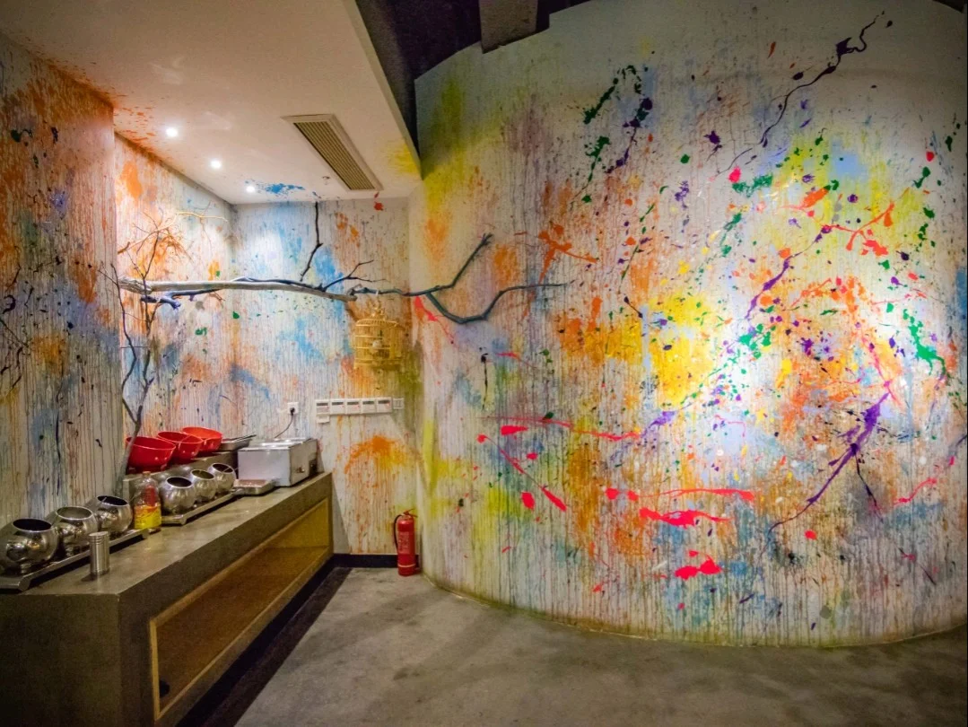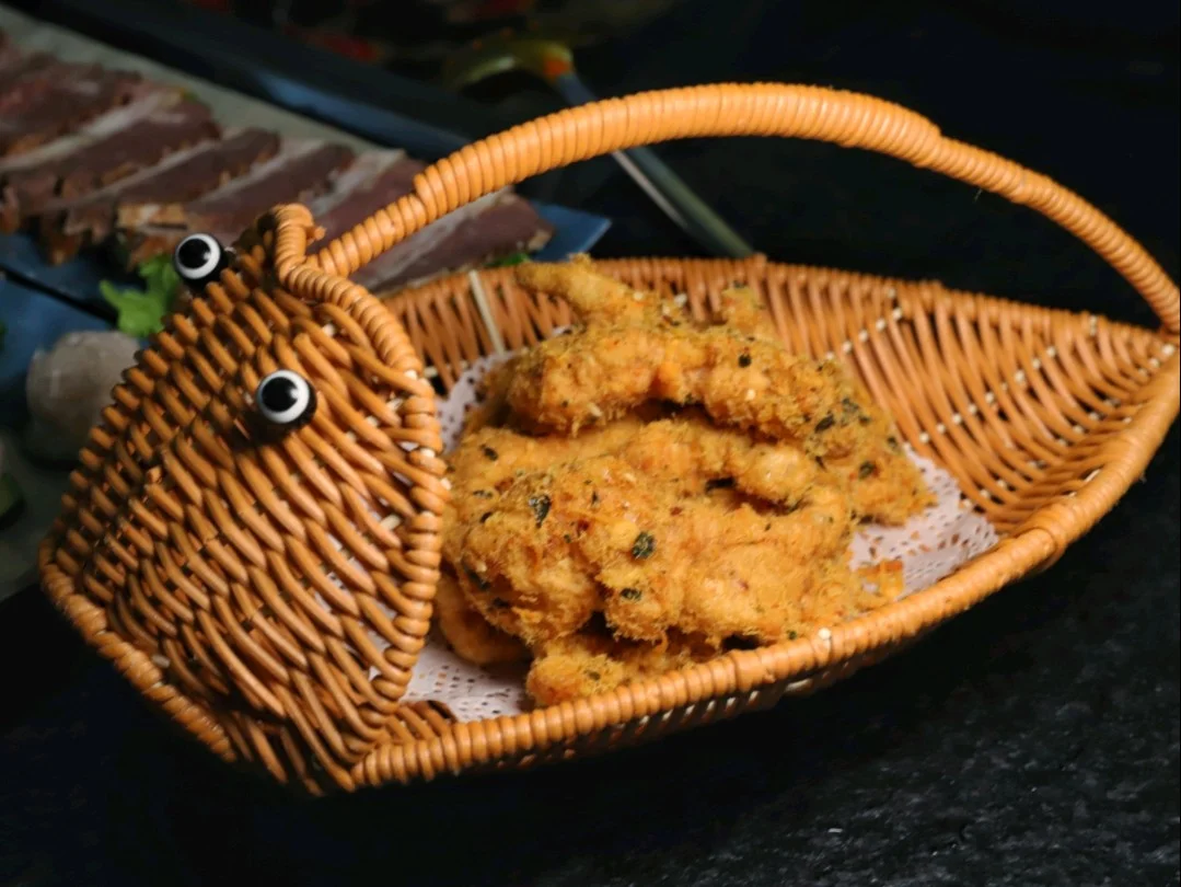 这家店整体用的是鱼的造型,还有壁画,整体看起来都是那么的ins风,就连最简单的自助调料区都看起来特别的有格调,很多小姐姐都在那里开始自拍了!大约六点多到店里,都发现很多小姐姐在排队了,感觉这是漂亮女孩子必须打卡的一家店!
