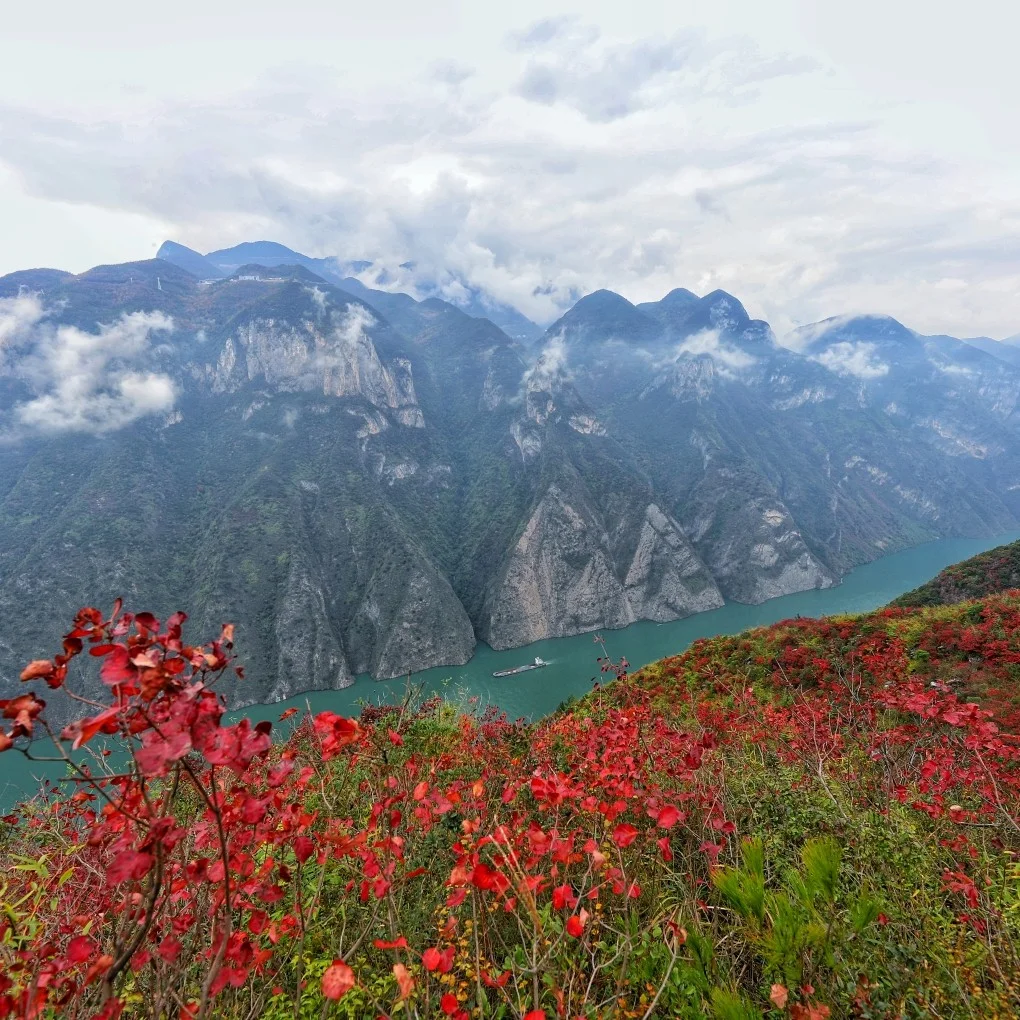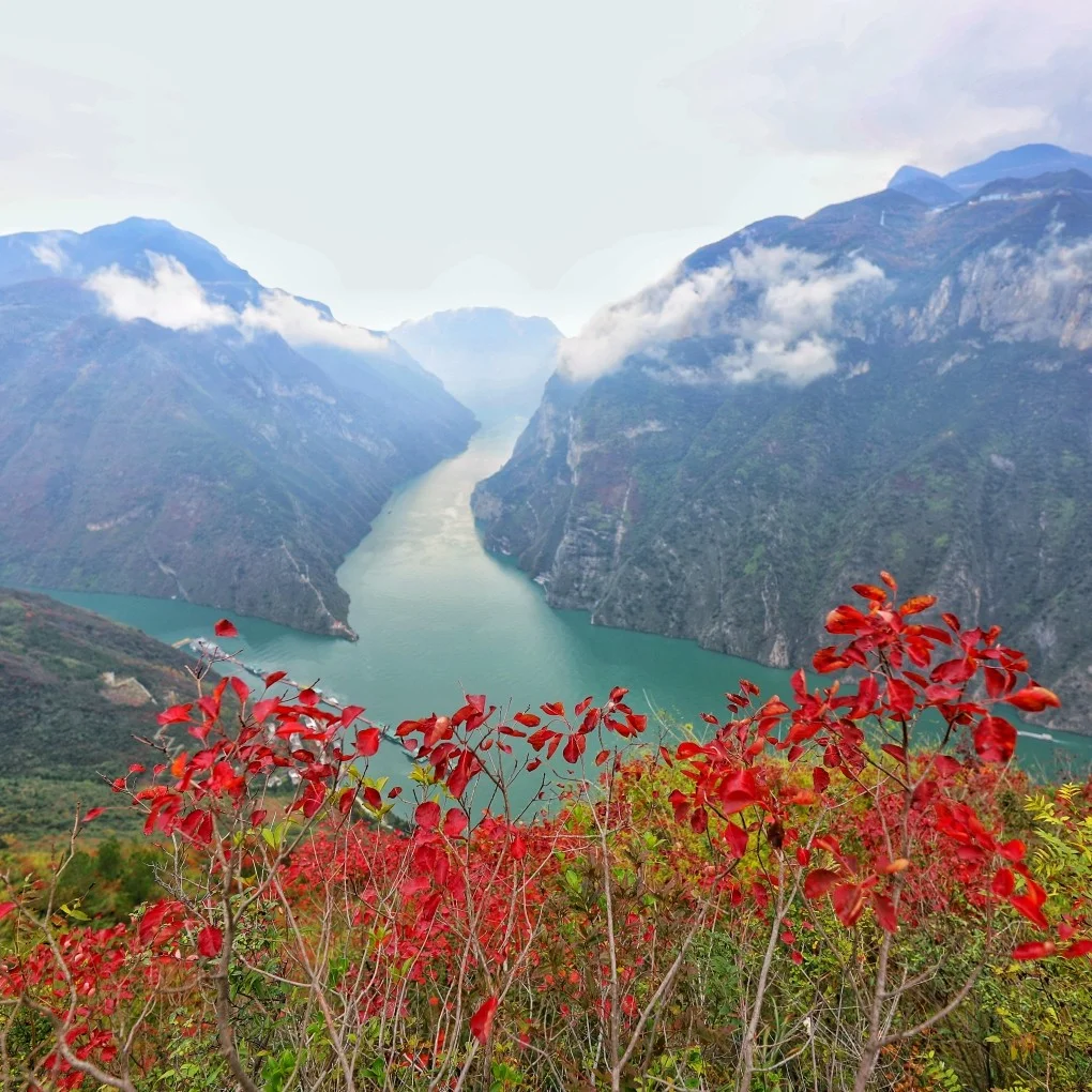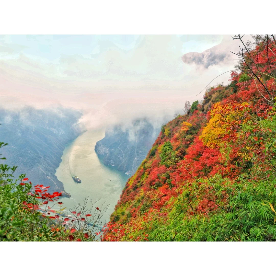 关于重庆,你们知道的不多!都说三峡的风景美,但是三峡风景在巫峡!巫峡作为重庆的另外一张名片,三峡的颜值担当这里的风景是绝美的!登上聚鹤峰,可以看到滚滚长江天际流,可以看到裹上一层神秘面纱的仙女峰!红叶让这个季节的三峡更加的多姿多彩!!!