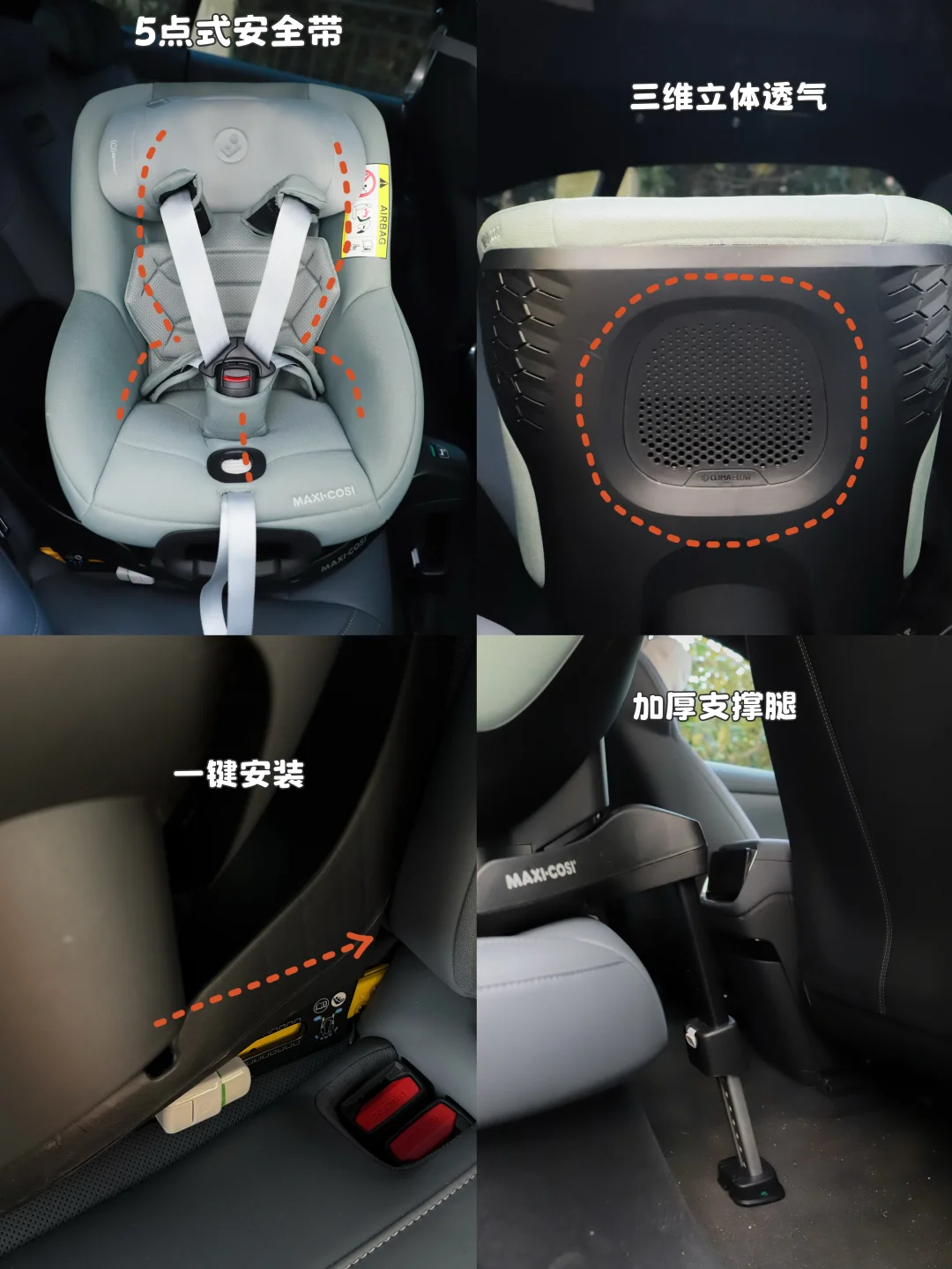 ✅ADAC测试冠军+3C+I-SIZE双认证,安全这块可以放心,还有Air Protect气囊头枕,用手一按就能感受到回弹,小脑袋被护得严严实实的~