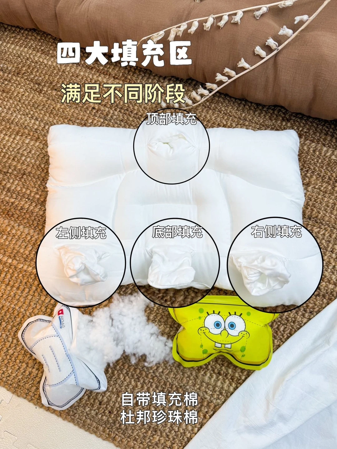 它的五大分区太棒了👏科学三区设计太懂宝宝需求,头区、颈区、肩区精准承托,不管娃仰睡还是侧睡,头颈肩都能稳稳贴合,而且左右两侧面积大,不会悬空晃荡,既能矫正头型,还能守护脊椎自然曲度,也不怕宝宝睡出驼背歪头问题~