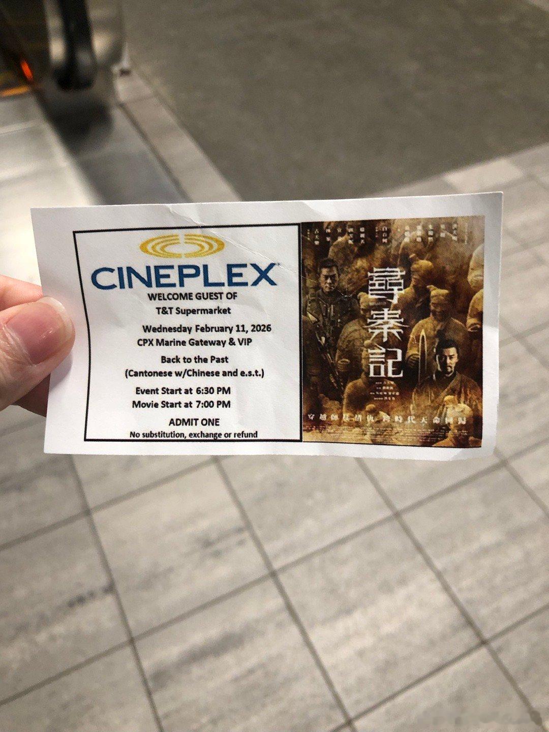 今儿公司包场可带家属观看电影,电影名《寻秦记》,我带着我妈妈一起去看了,这也是我妈妈来加拿大第一次看电影